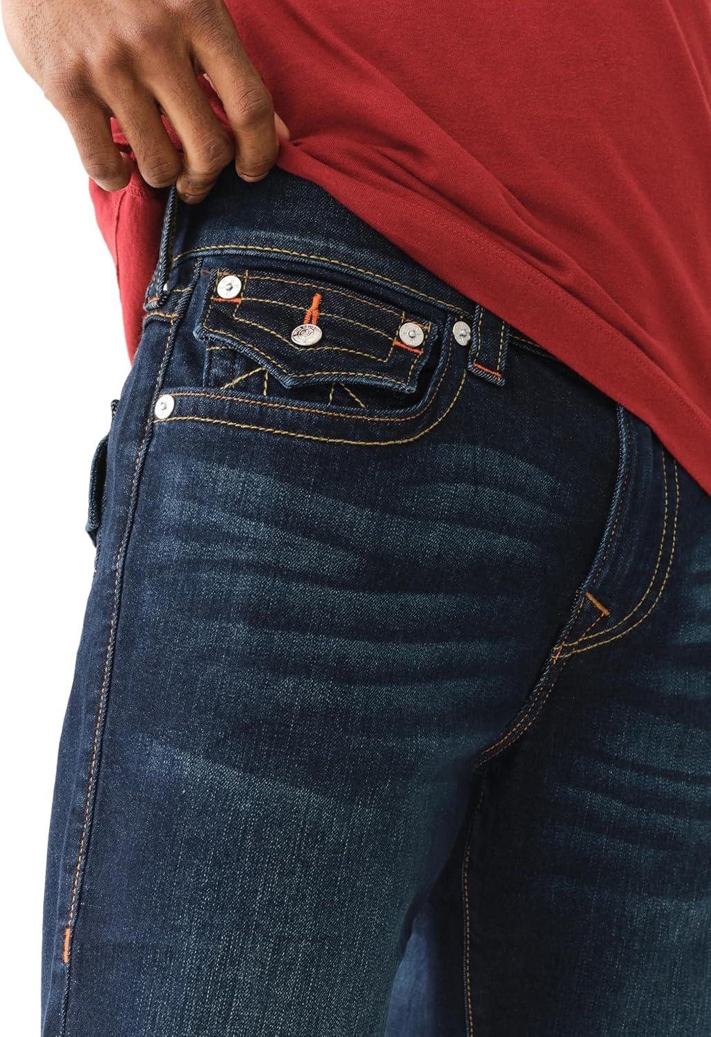True Religion Men’s Ricky Straight Leg Jeans with Back Flap Pockets – Mens Jeans, Dark Wash Muddy Waters, 38W x 32L