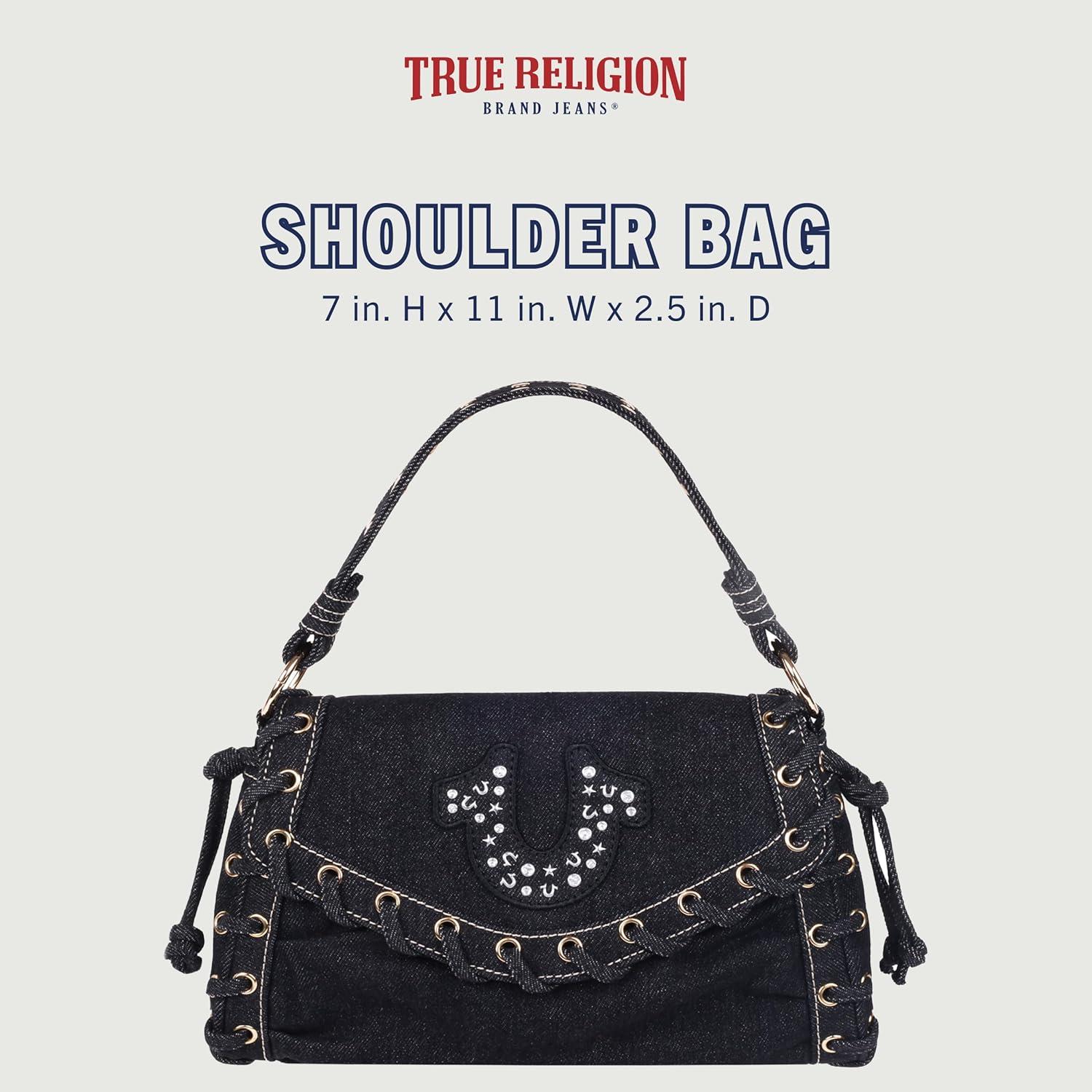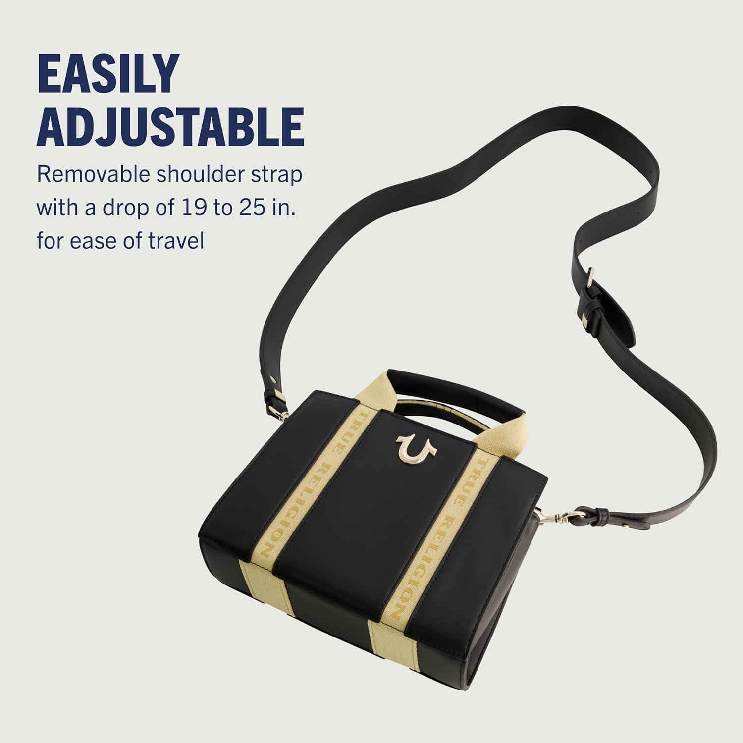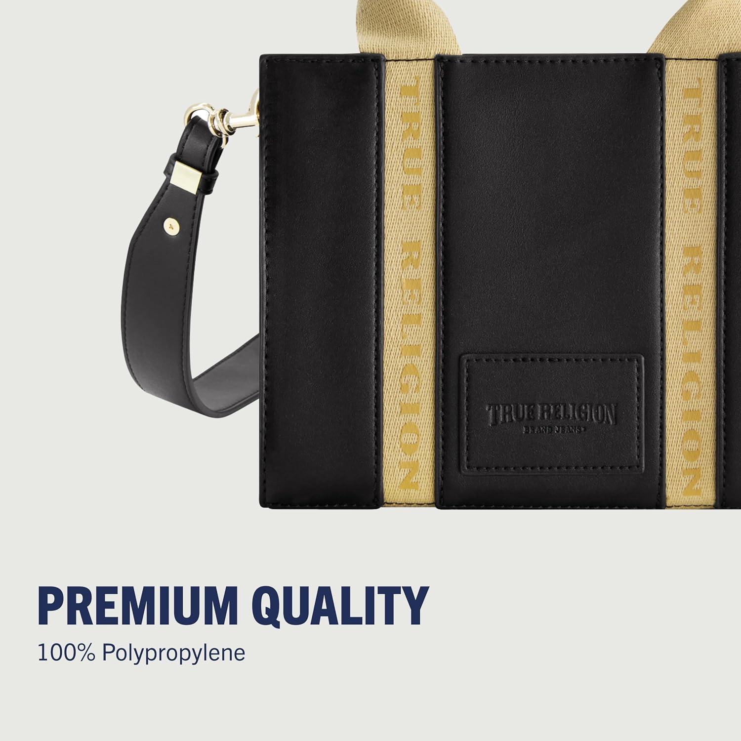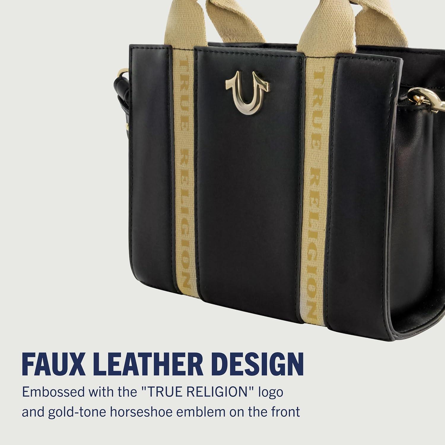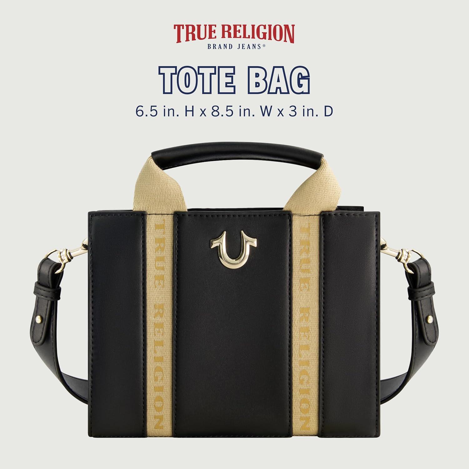True Religion Tote Bag, Women’s Mini Handbag with Adjustable Shoulder Strap(Black)