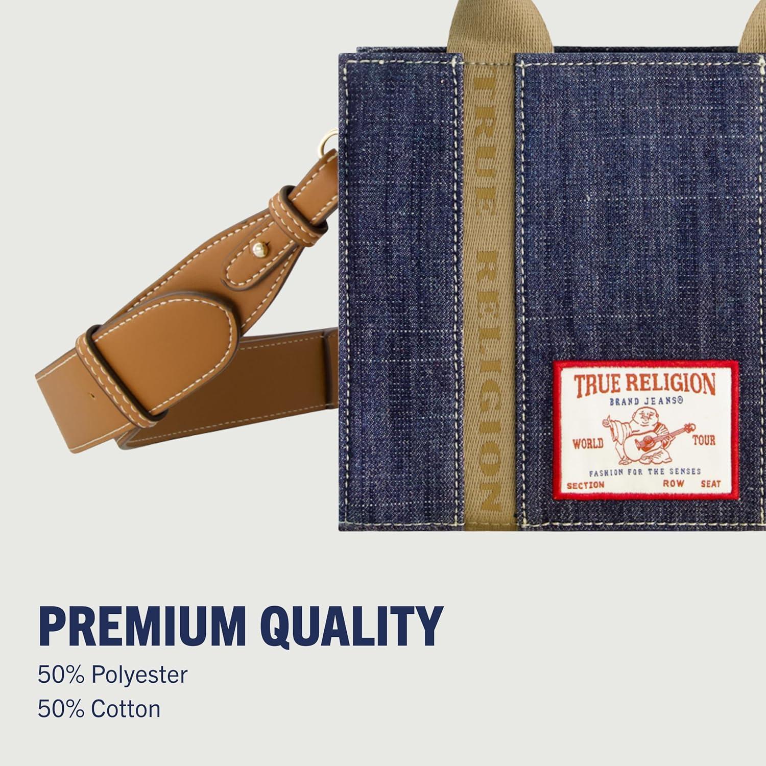 True Religion Tote Bag, Women’s Mini Handbag with Adjustable Shoulder Strap(Dark Denim)