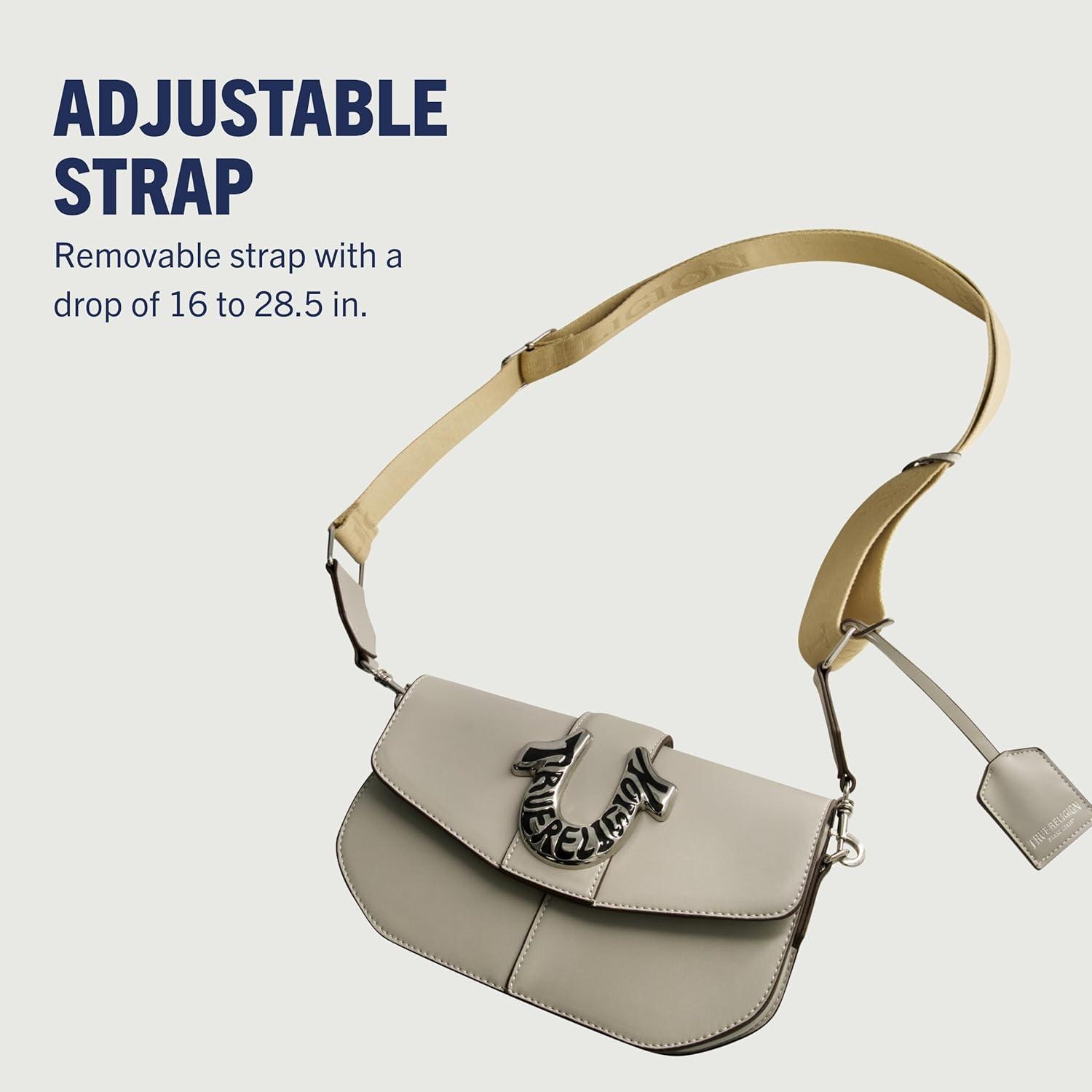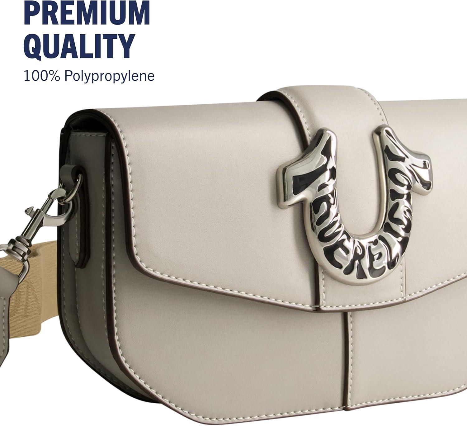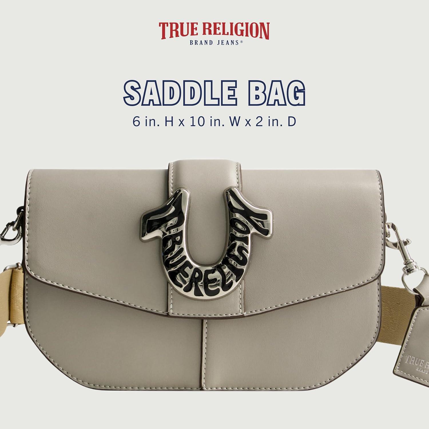 True Religion Saddle Bag, Women’s Faux Leather Crossbody Purse with Adjustable Shoulder Strap, Light Grey, One Size