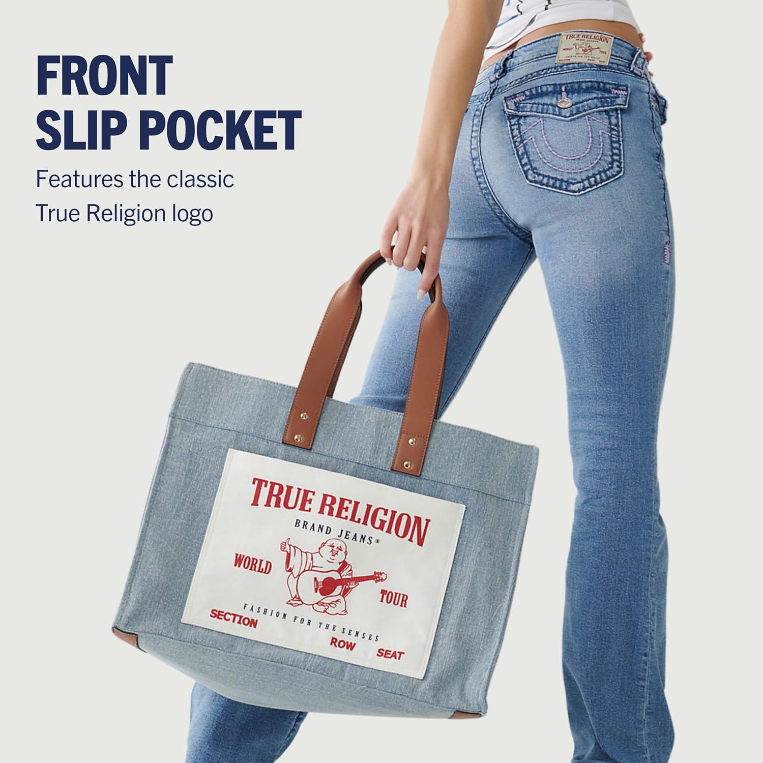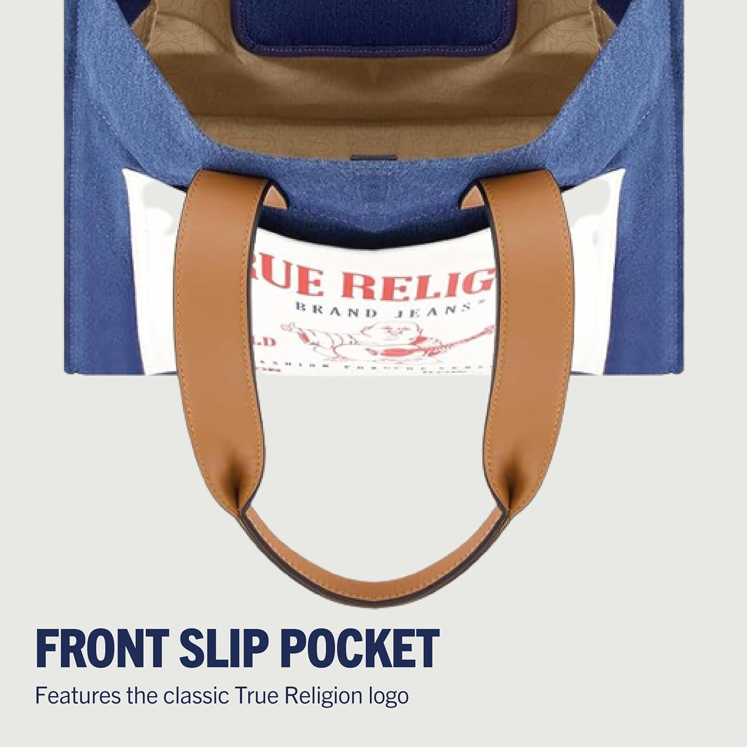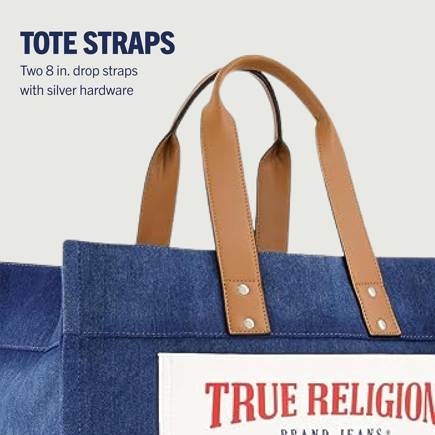 True Religion Tote, Women’s Medium Travel Shoulder Bag with Adjustable Strap(Blue Denim)