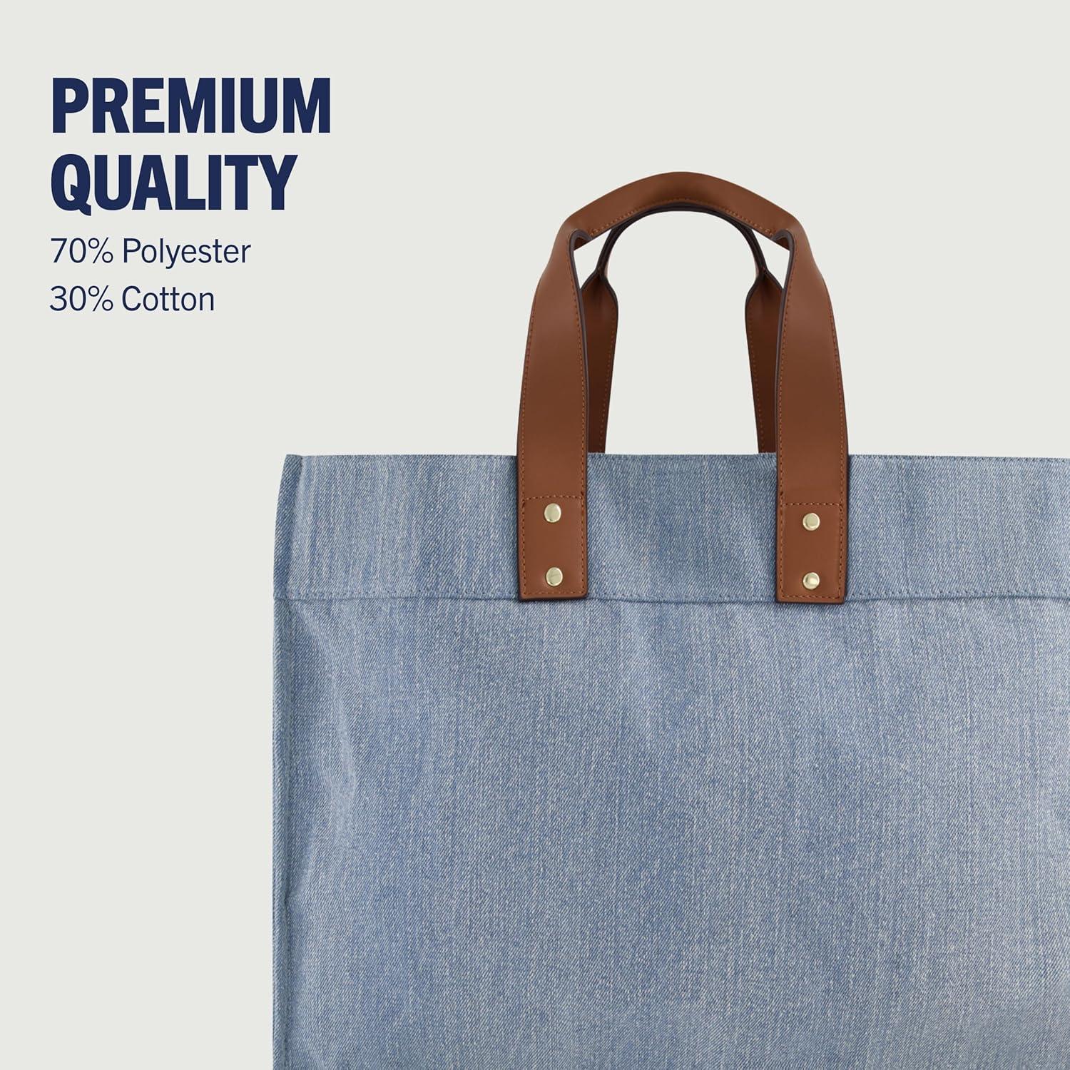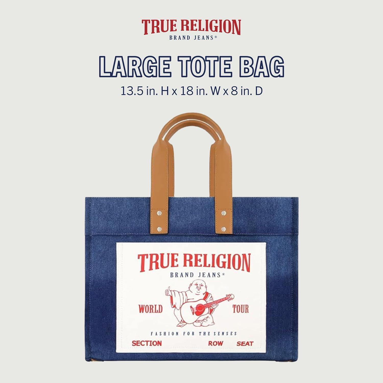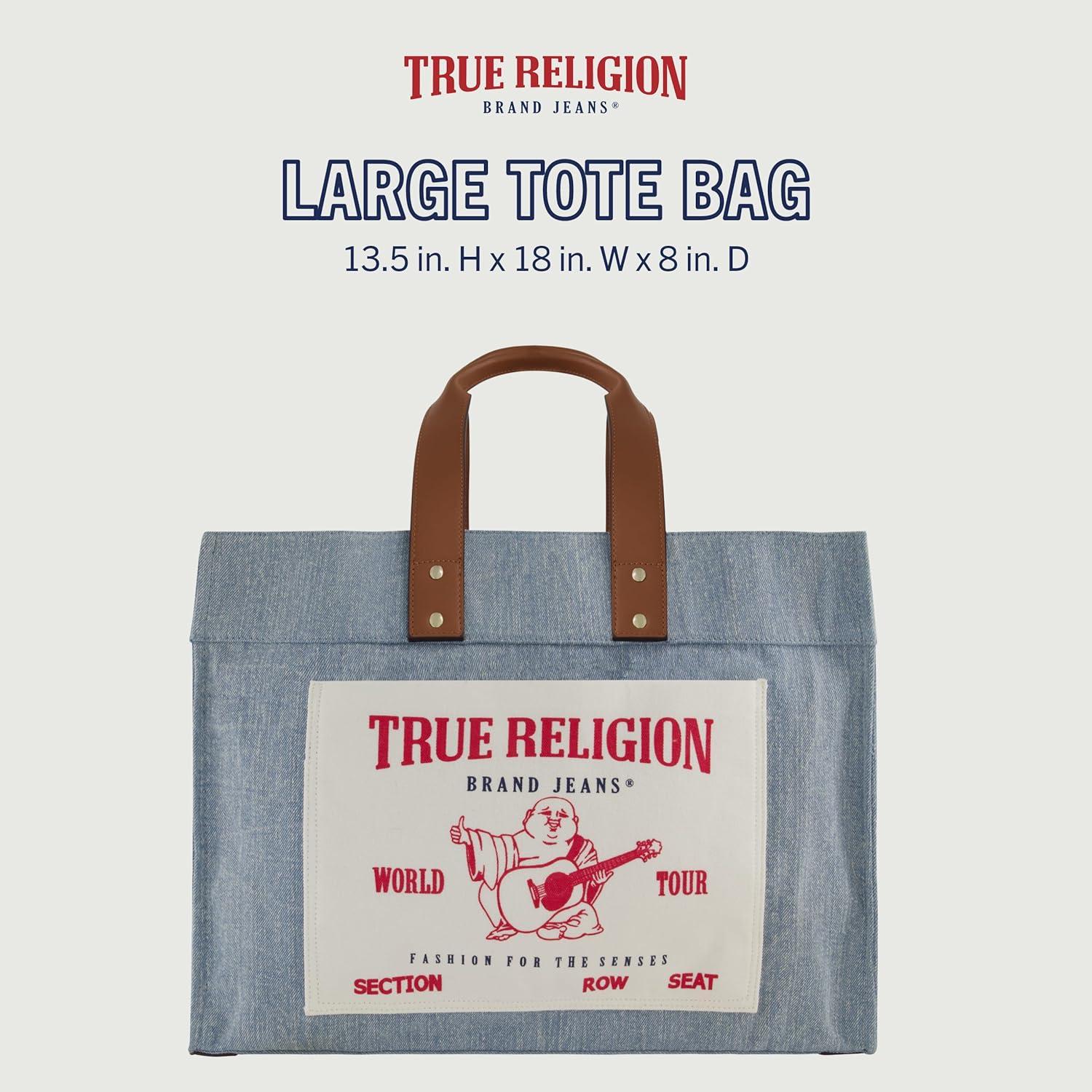 True Religion Large Tote Bag, Canvas Travel Carryall Shoulder Handbag(Denim)