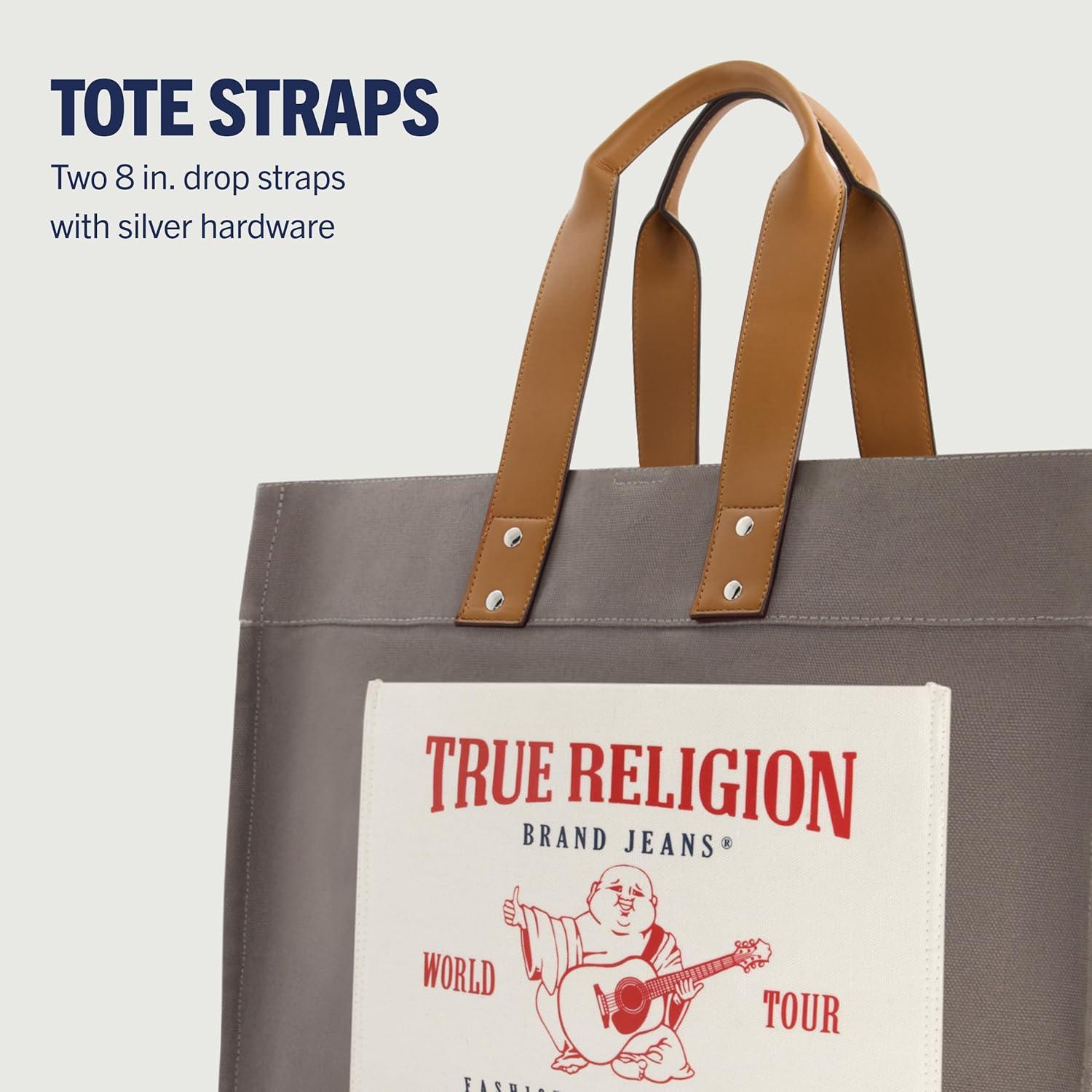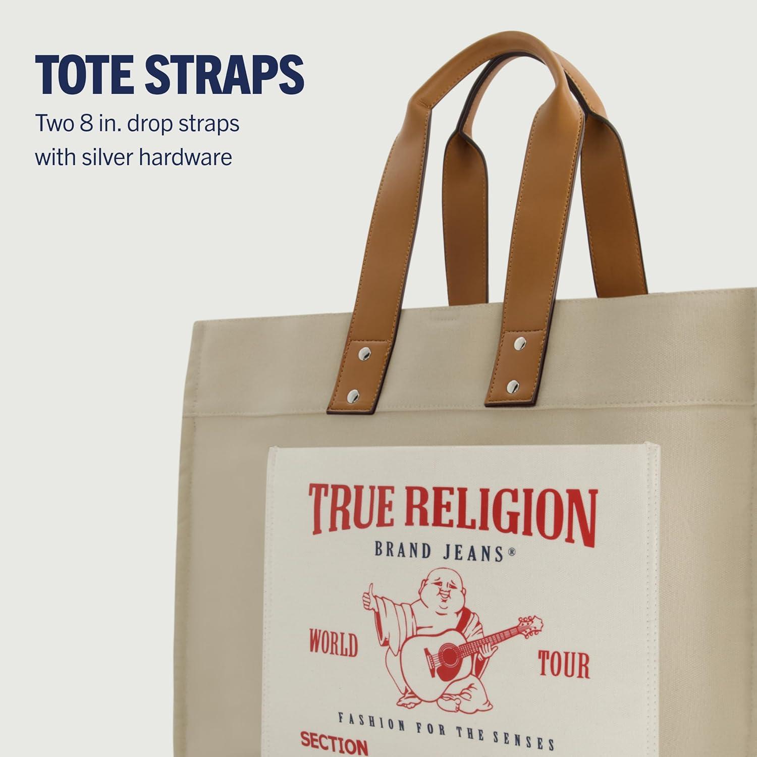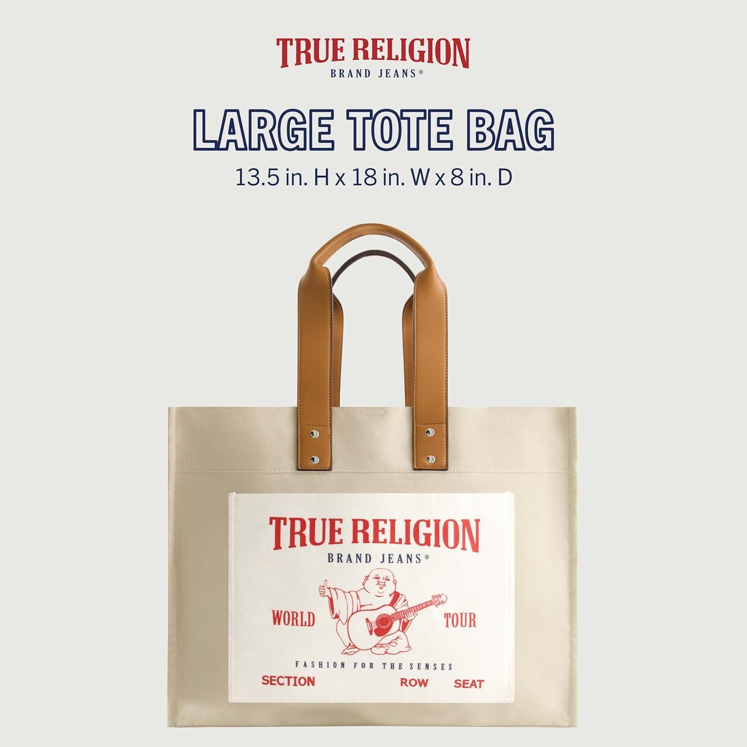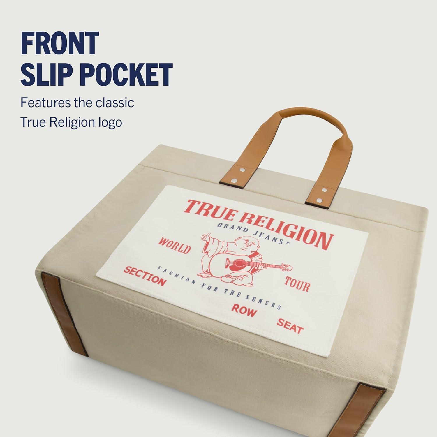 True Religion Large Tote Bag, Canvas Travel Carryall Shoulder Handbag(Natural)
