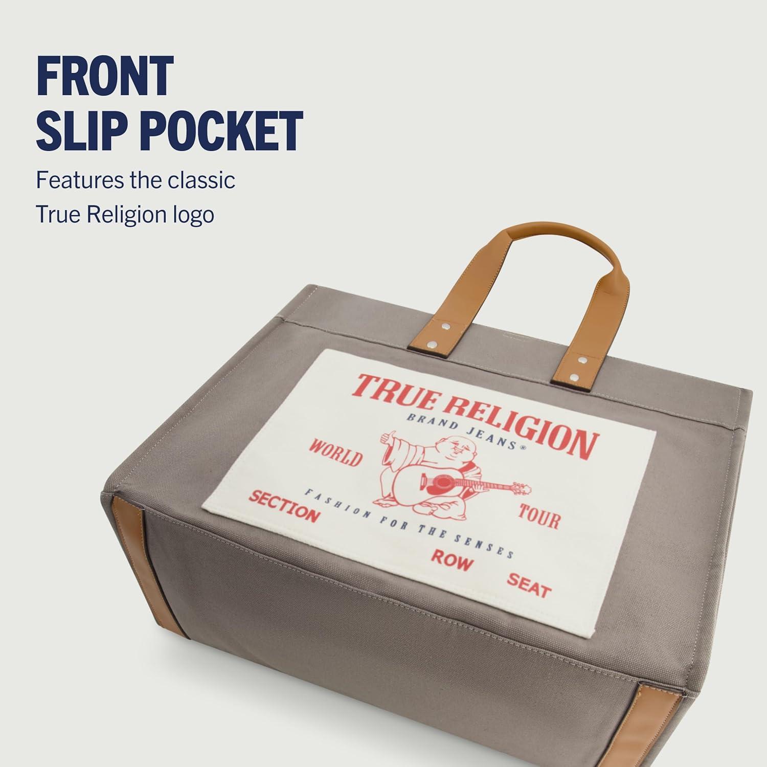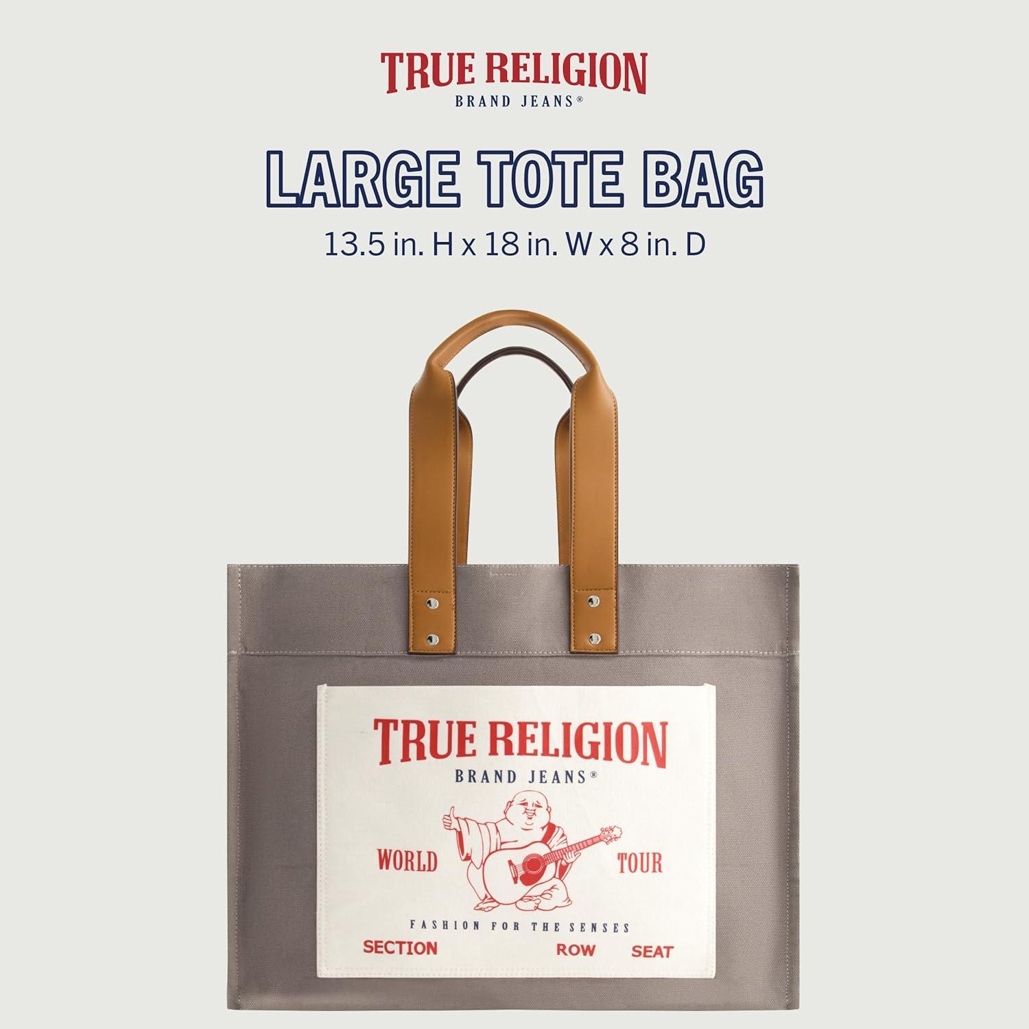 True Religion Large Tote Bag, Canvas Travel Carryall Shoulder Handbag(Grey)
