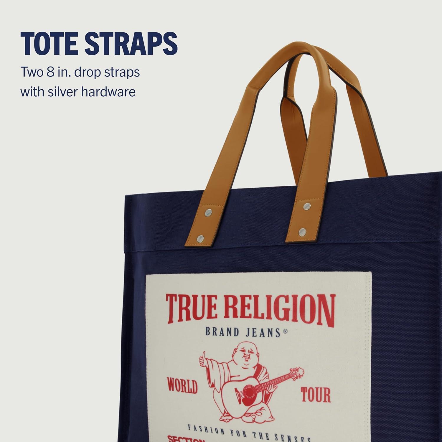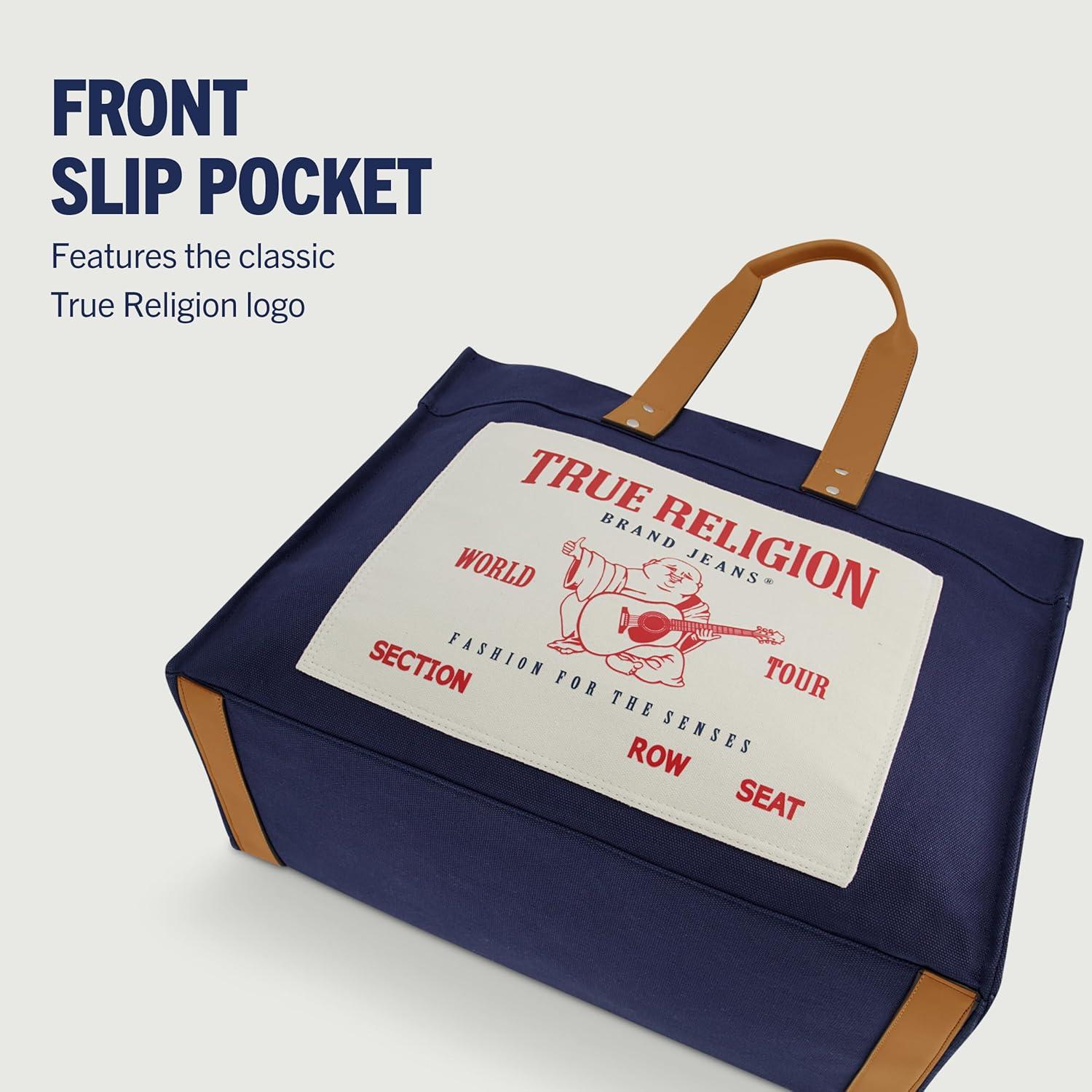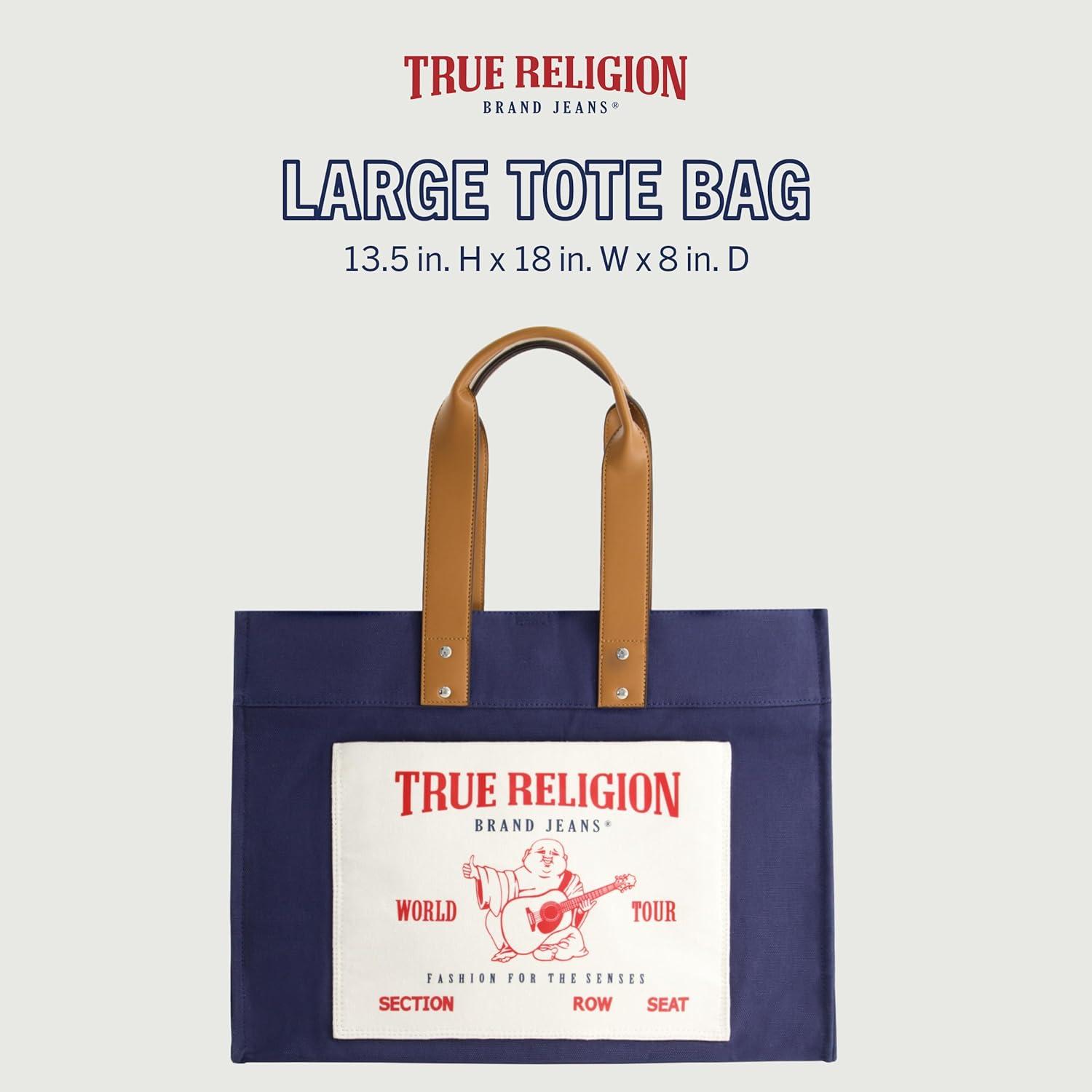 True Religion Large Tote Bag, Canvas Travel Carryall Shoulder Handbag(Navy)