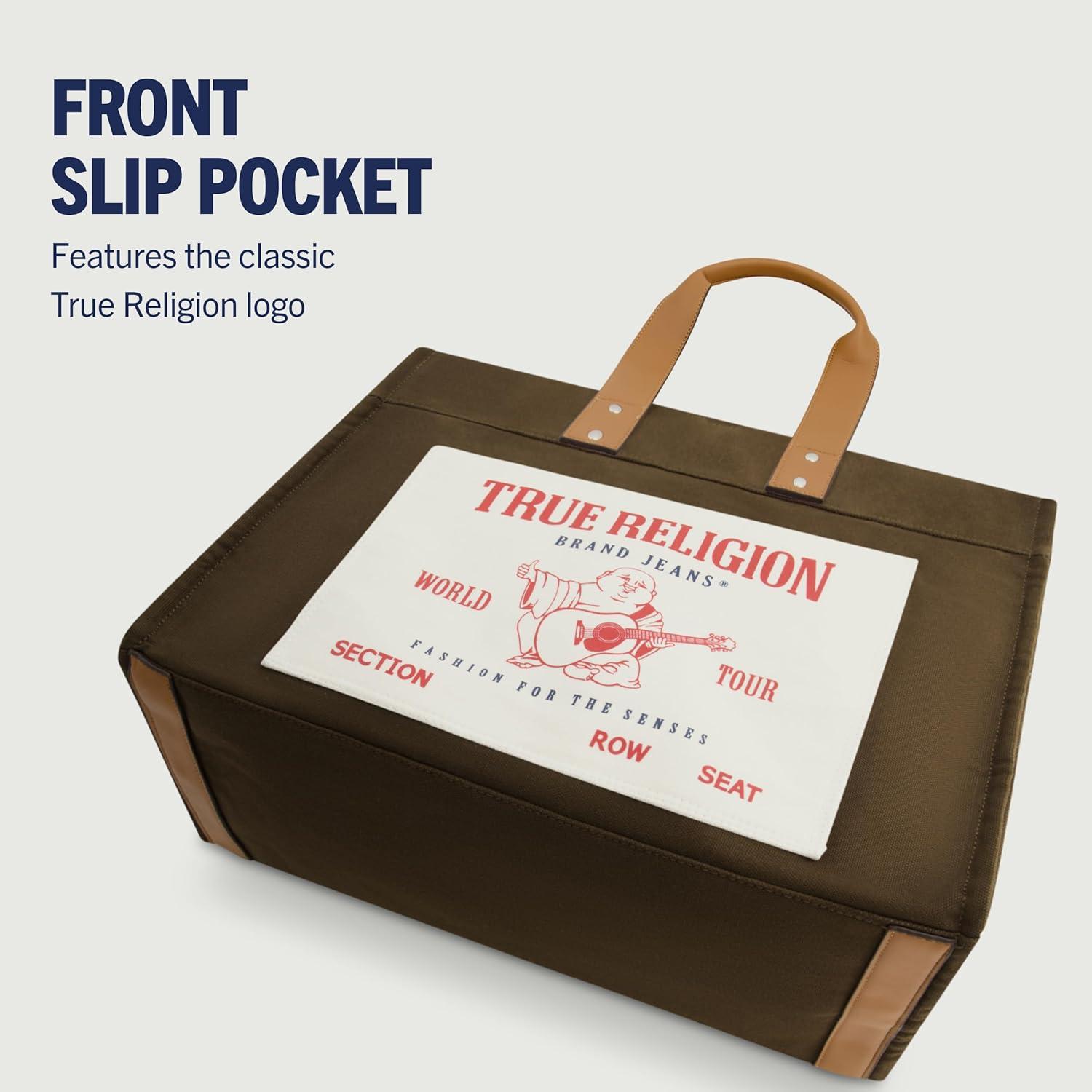 True Religion Large Tote Bag, Canvas Travel Carryall Shoulder Handbag(Olive)