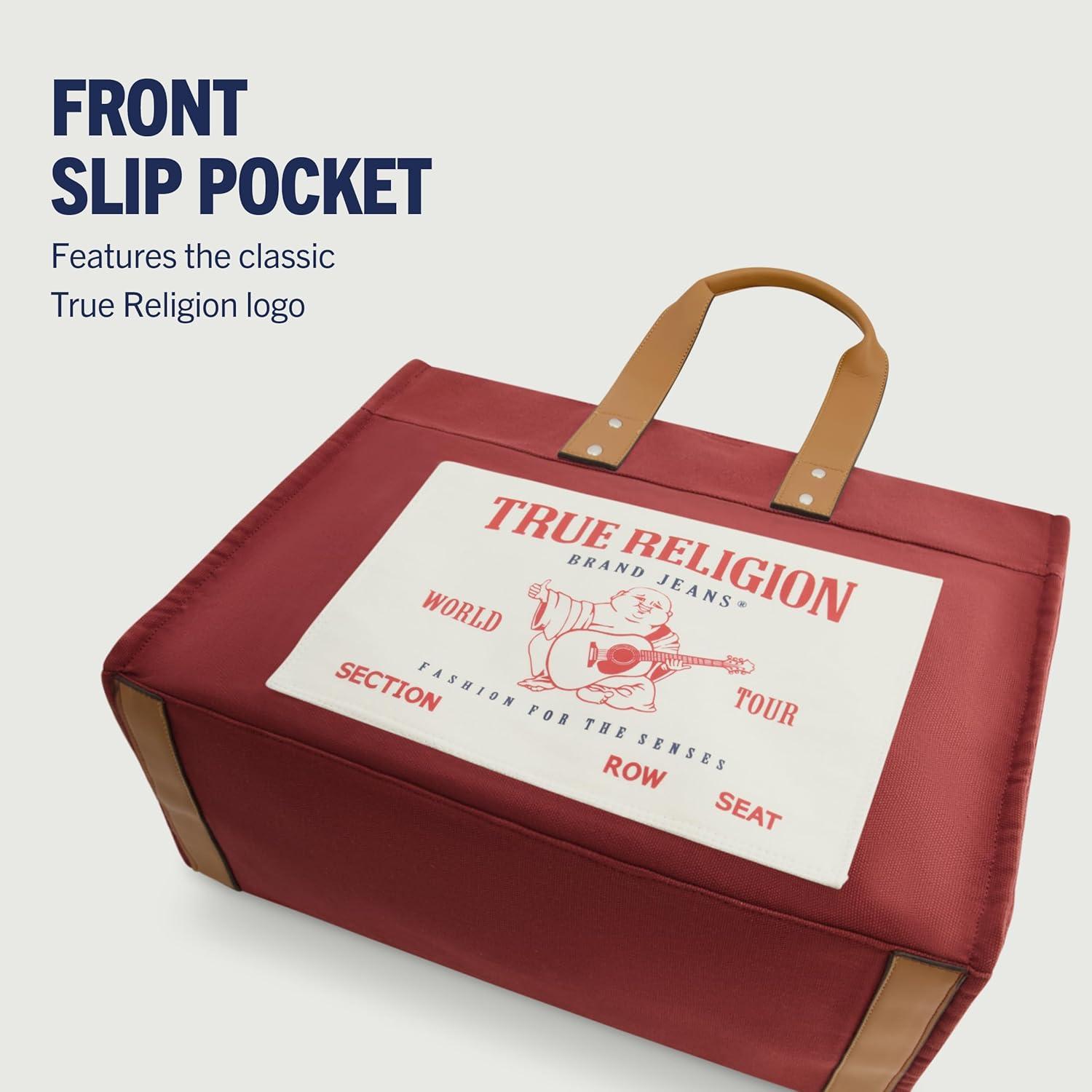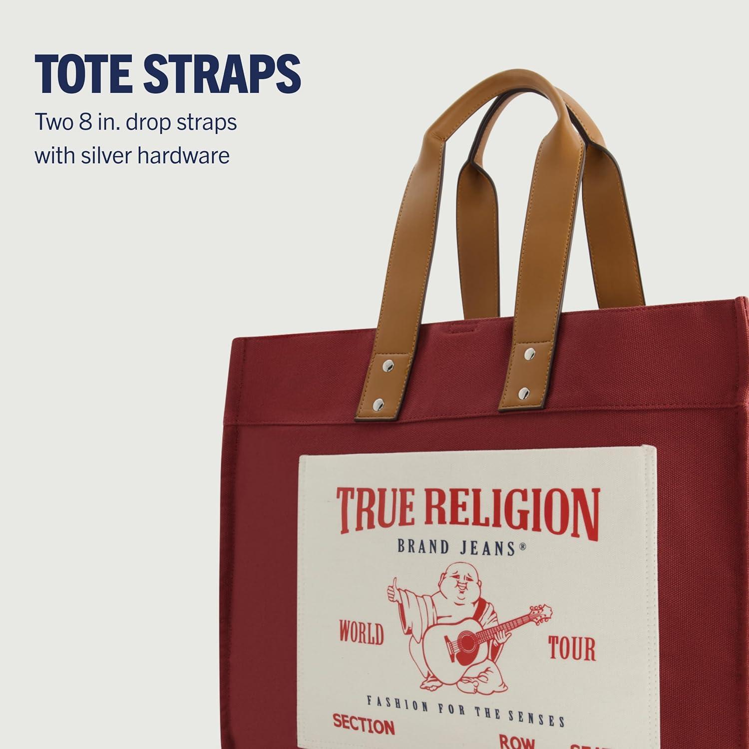 True Religion Large Tote Bag, Canvas Travel Carryall Shoulder Handbag(Red)
