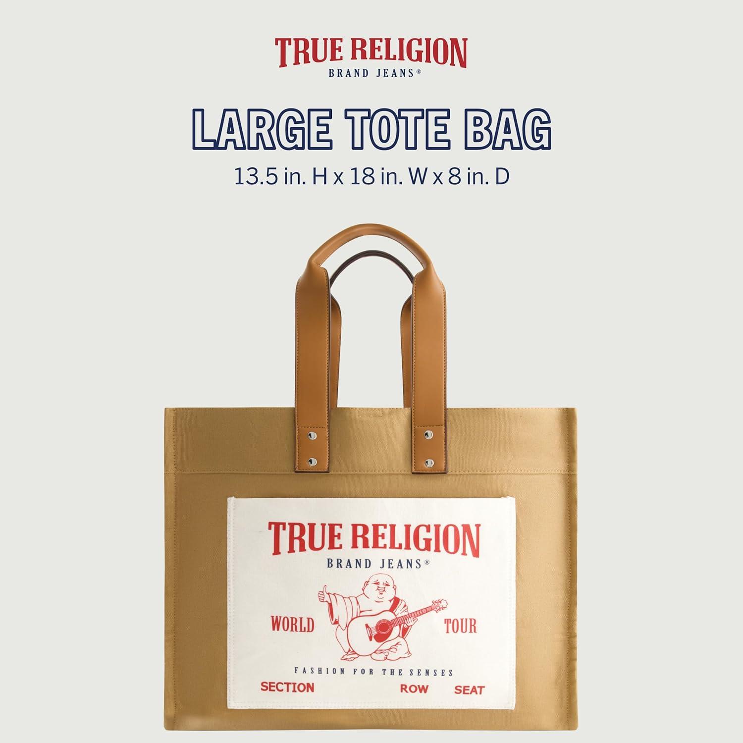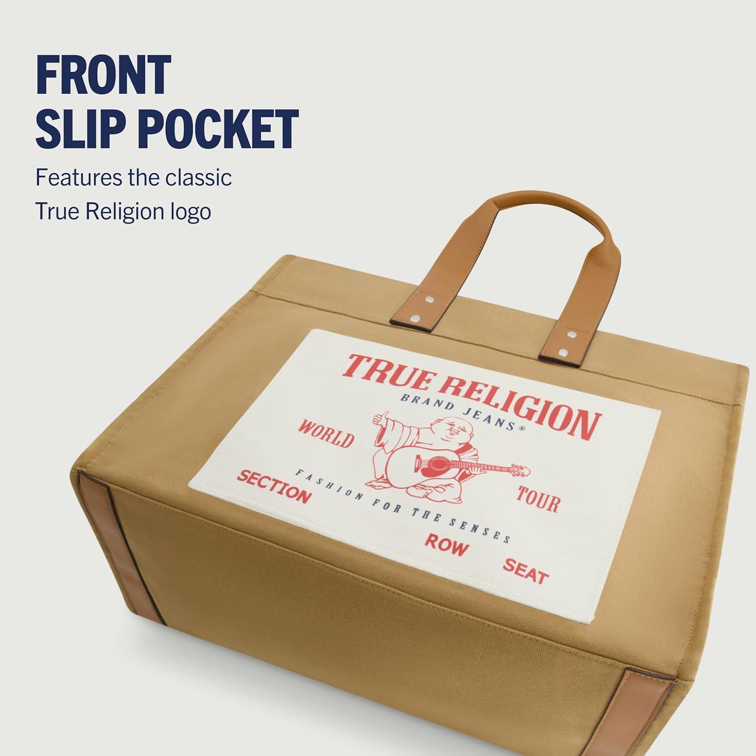 True Religion Large Tote Bag, Canvas Travel Carryall Shoulder Handbag(Tan)