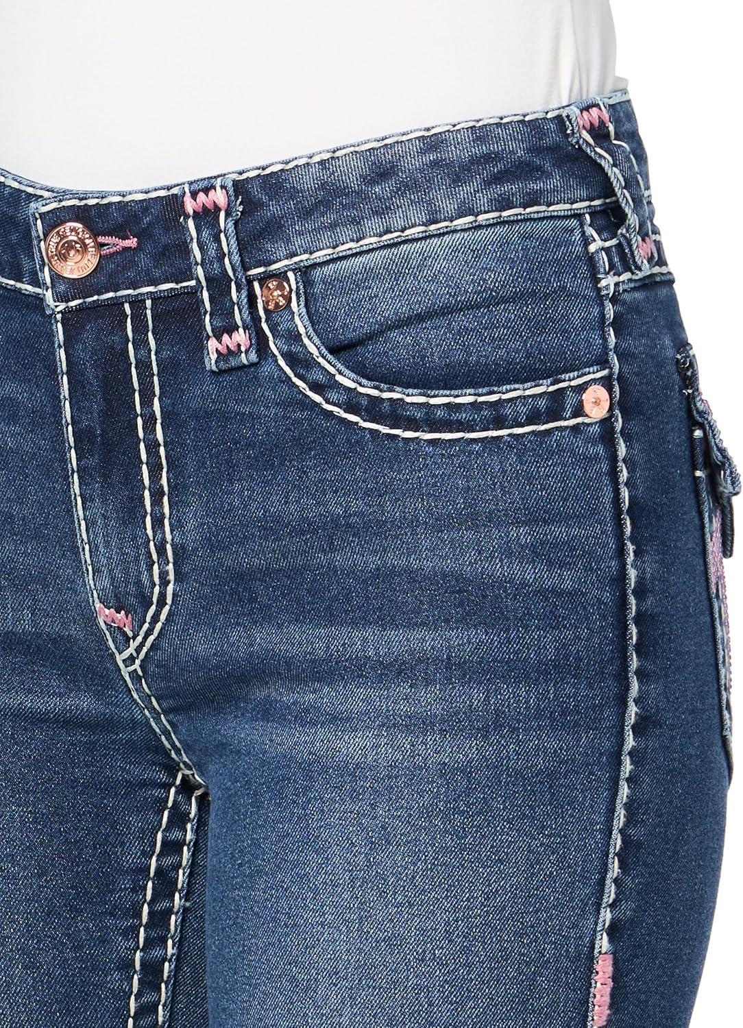 True Religion Women’s Money Emb Jennie Mr Skinny Jeans – Skinny Fit with Big T Flap & Embroidery(Frosty Morn)