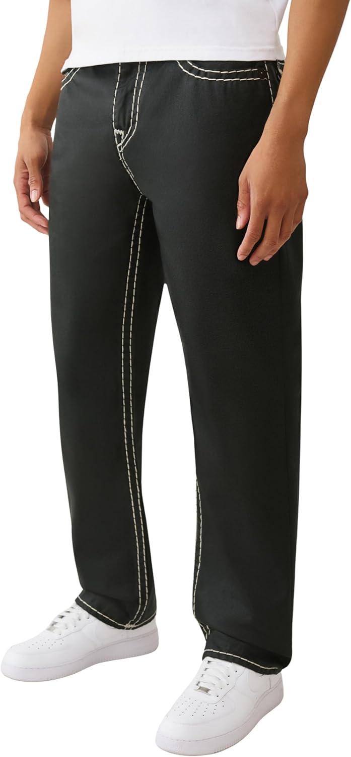 True Religion Men’s Ricky Big T Straight Leg Jean with Back Flap Pockets(Body Rinse Black)