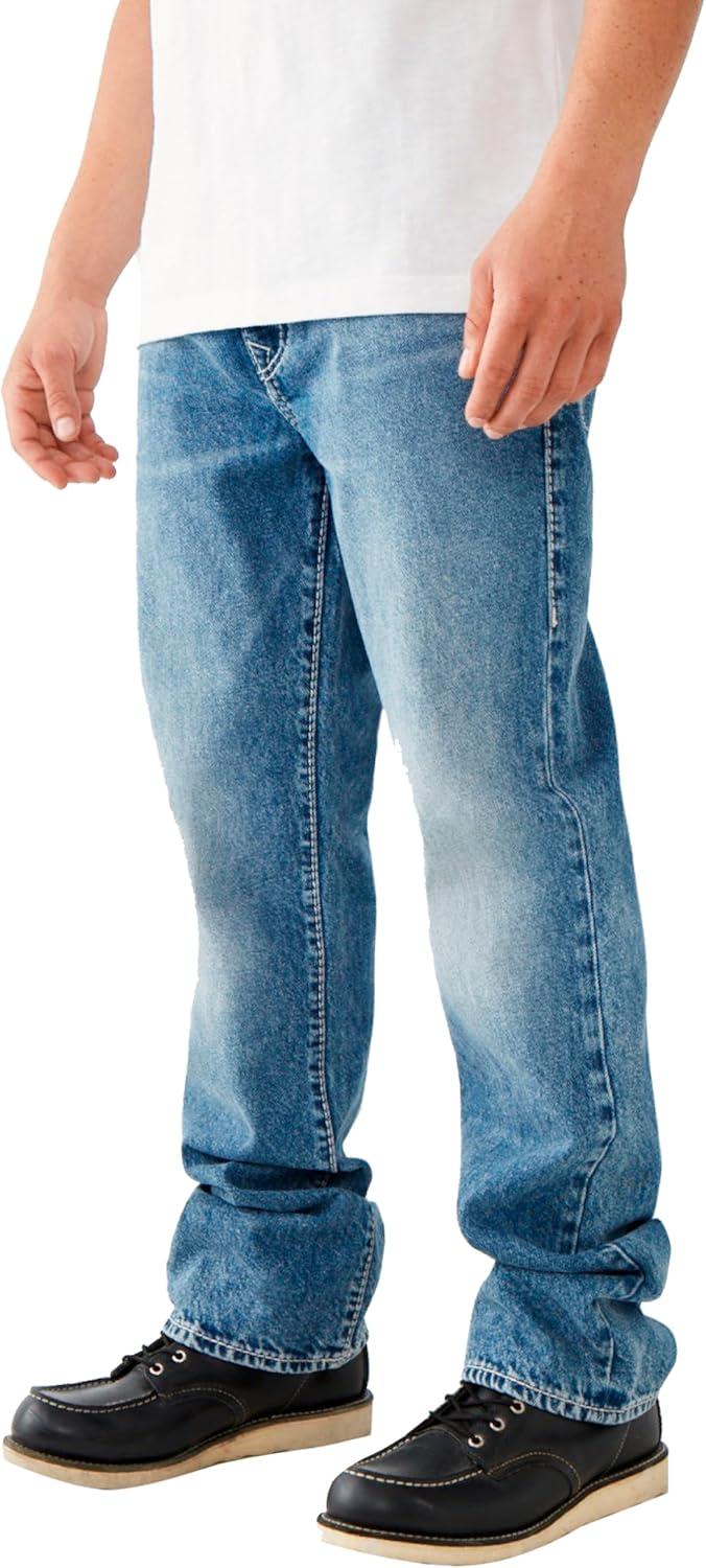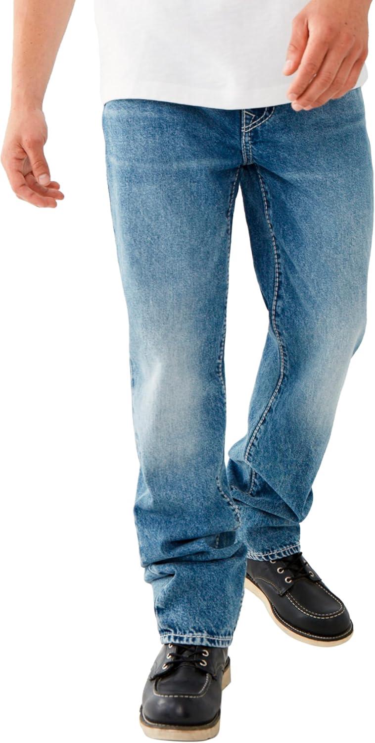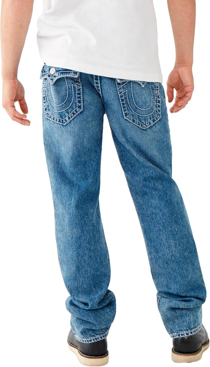 True Religion Men’s Ricky Big T Straight Leg Jean with Back Flap Pockets(Body Rinse)