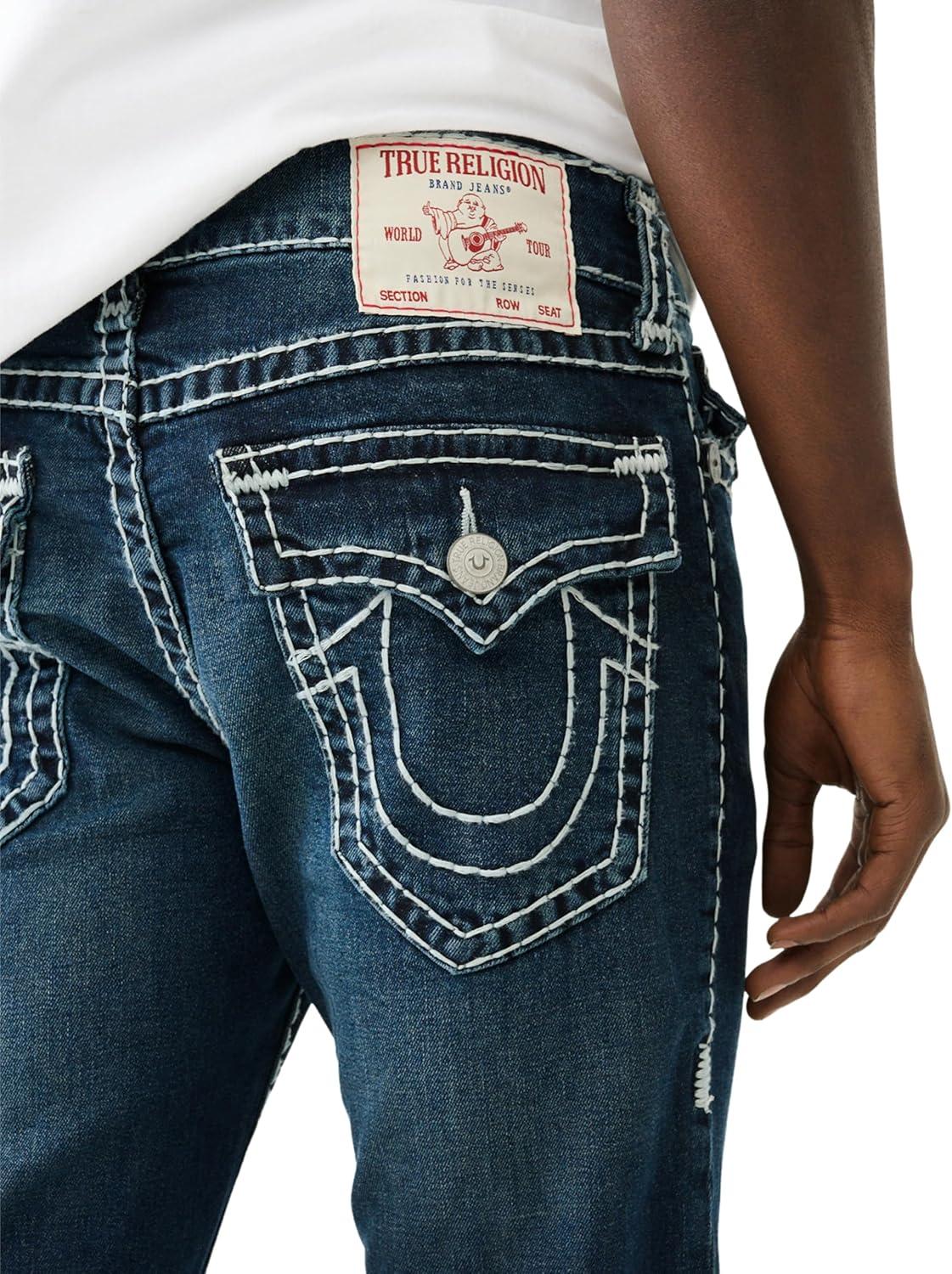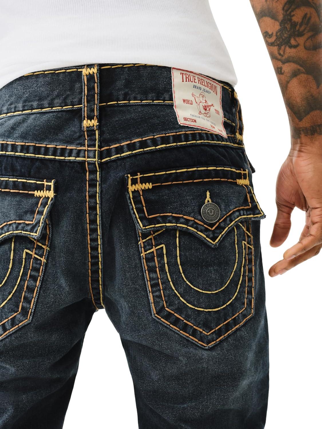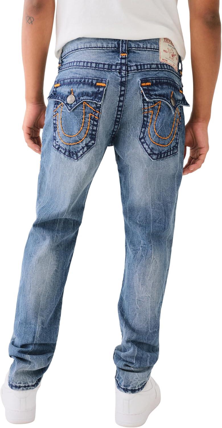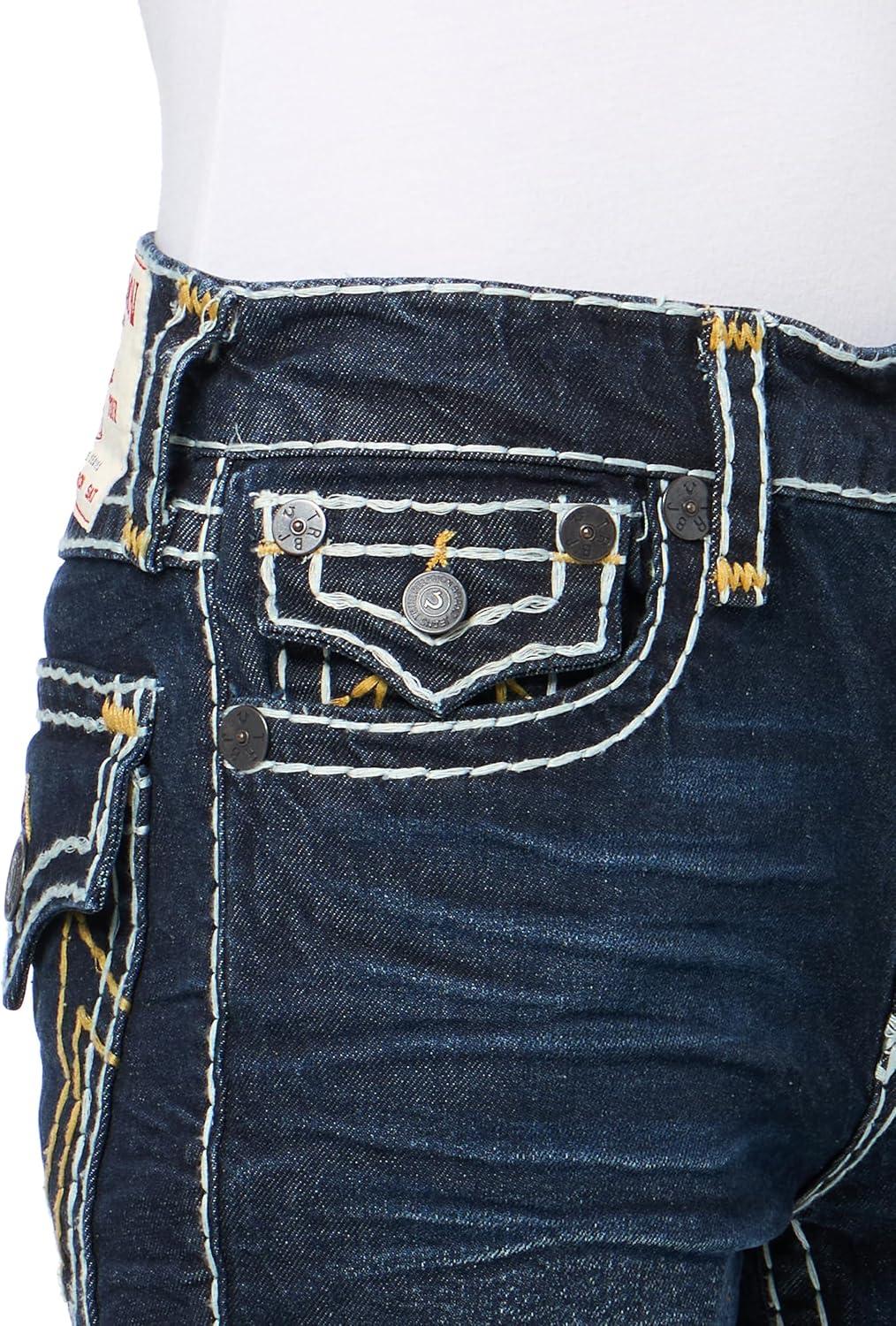 True Religion Men’s AOP Ricky SN Flap Jeans – 34″ Inseam, Flap Pockets, Contrast Stitching, Premium Denim
