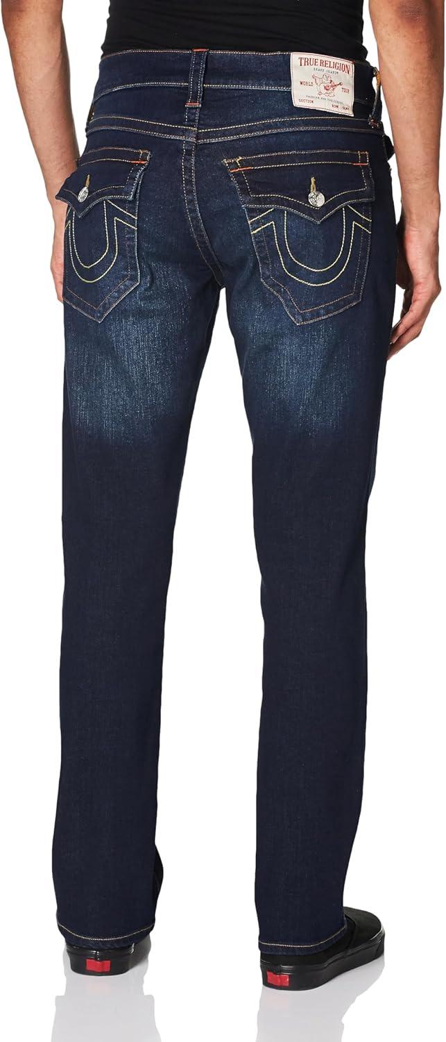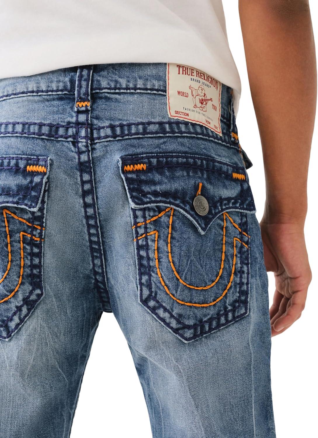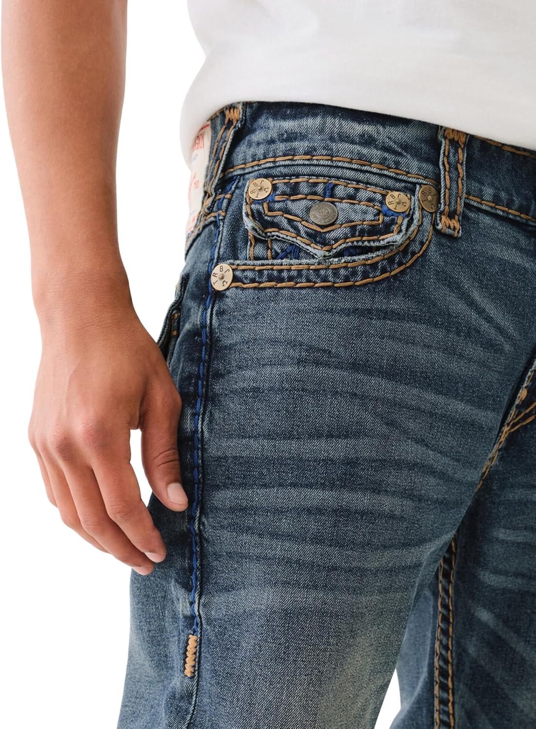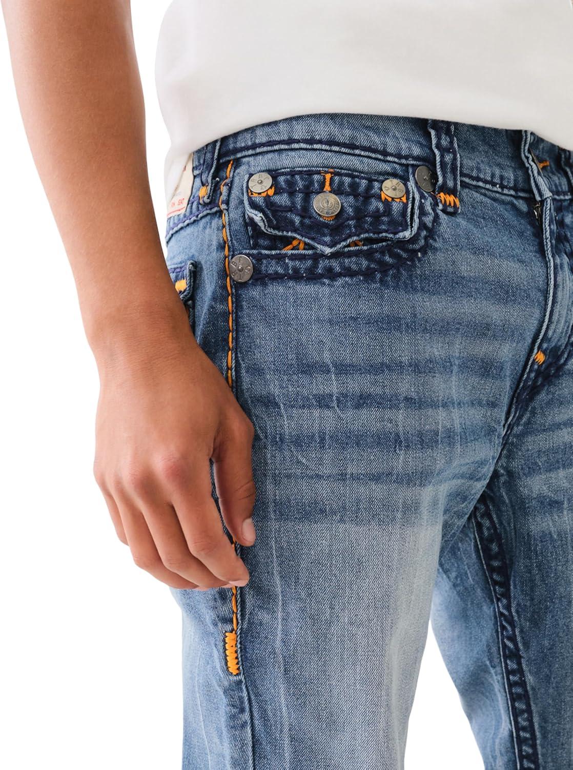 True Religion Men’s AOP Ricky SN Flap Jeans – 34″ Inseam, Flap Pockets, Contrast Stitching, Premium Denim