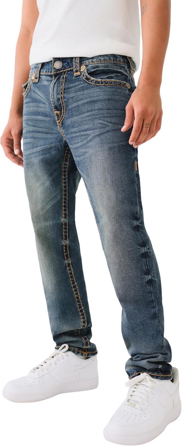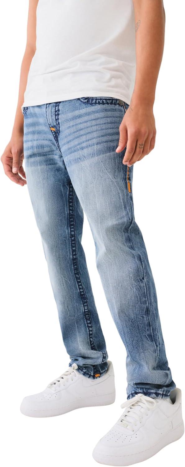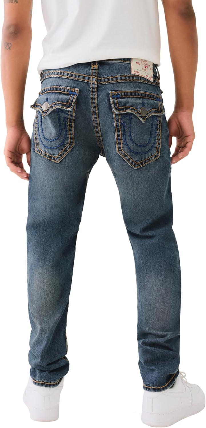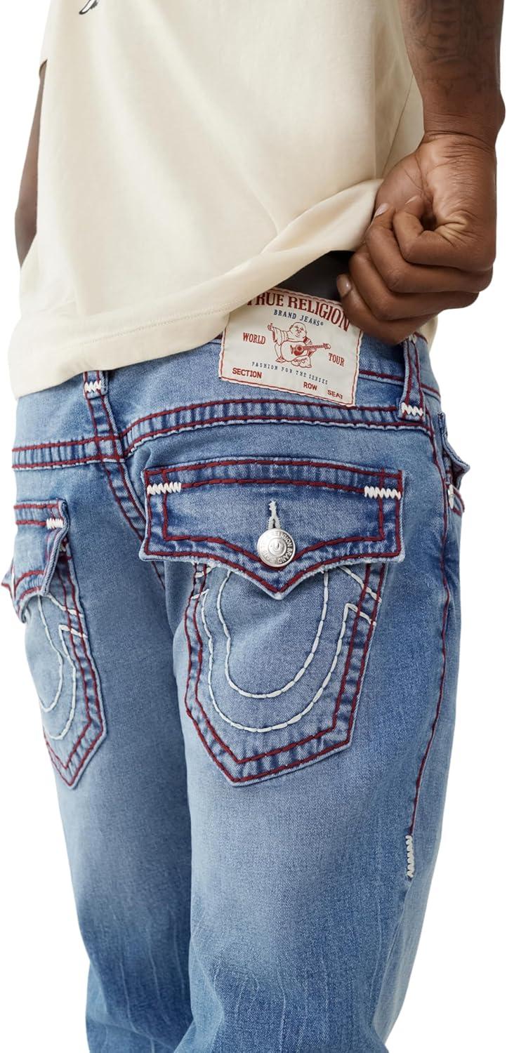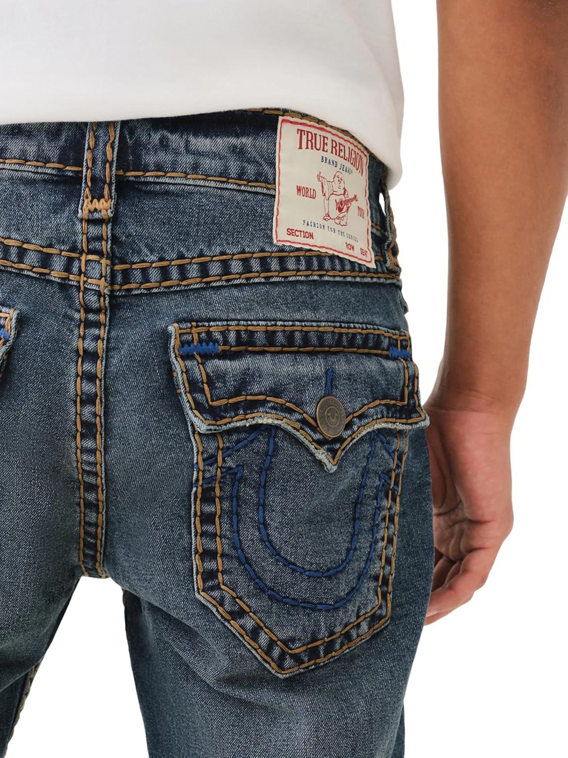 True Religion Men’s AOP Ricky SN Flap Jeans – 34″ Inseam, Flap Pockets, Contrast Stitching, Premium Denim