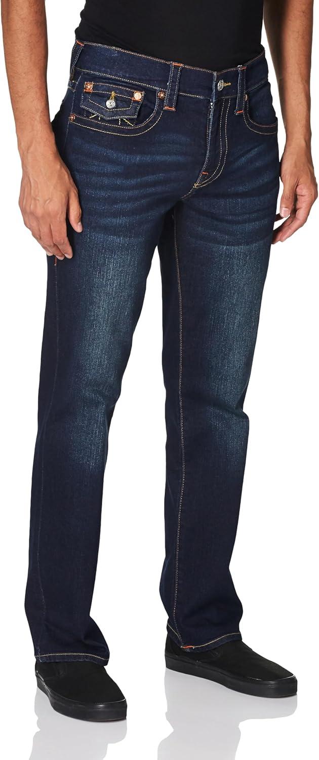 True Religion Men’s Ricky Straight Leg Jeans with Back Flap Pockets – Mens Jeans, Dark Wash Muddy Waters, 34W x 32L