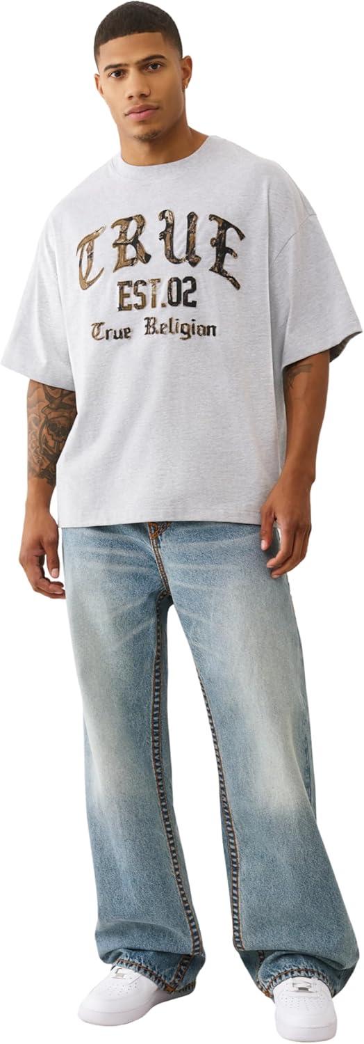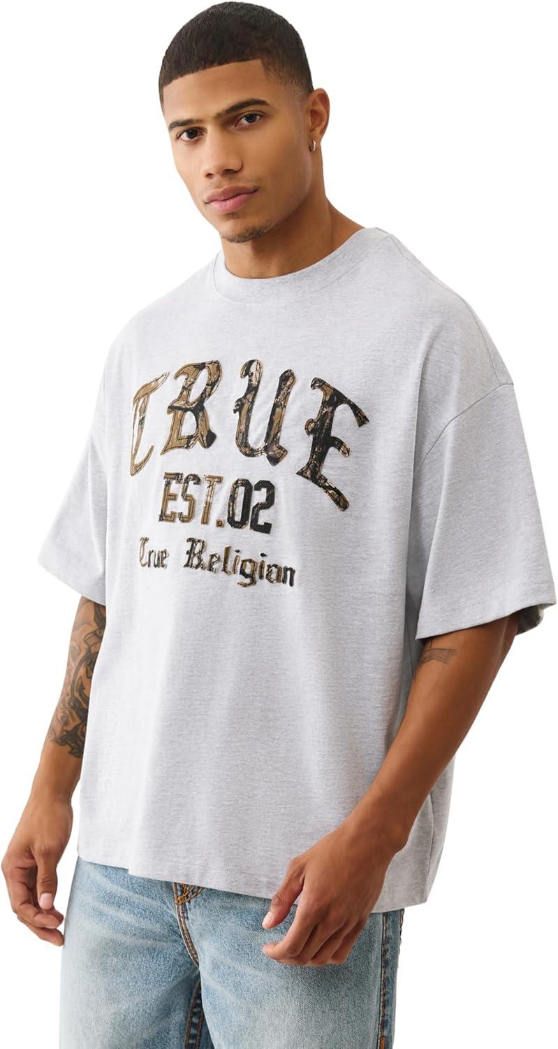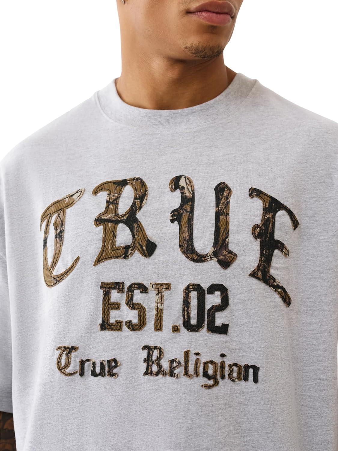 True Religion Men’s Forest Camo Oversized Tee – Short Sleeve Crewneck Graphic T-Shirt(H. Grey)