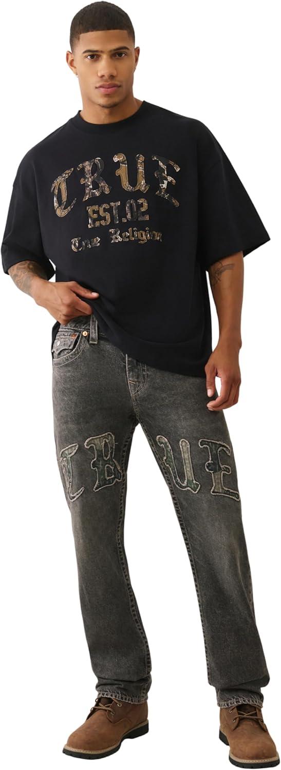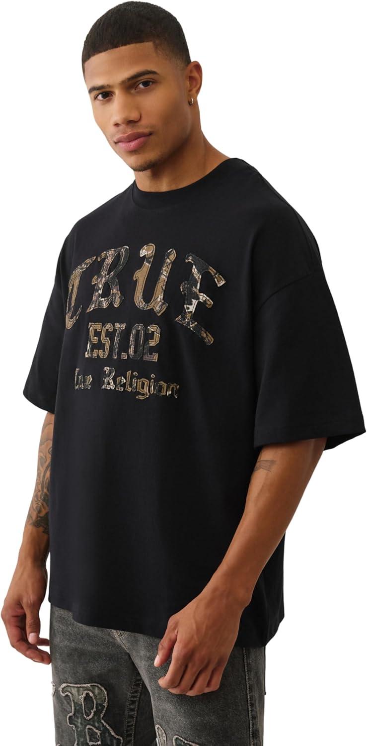 True Religion Men’s Forest Camo Oversized Tee – Short Sleeve Crewneck Graphic T-Shirt(Jet Black)