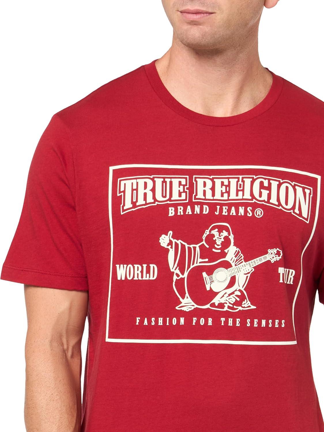 True Religion Mens SRS Puff Crew Tee(Red Dhalia)