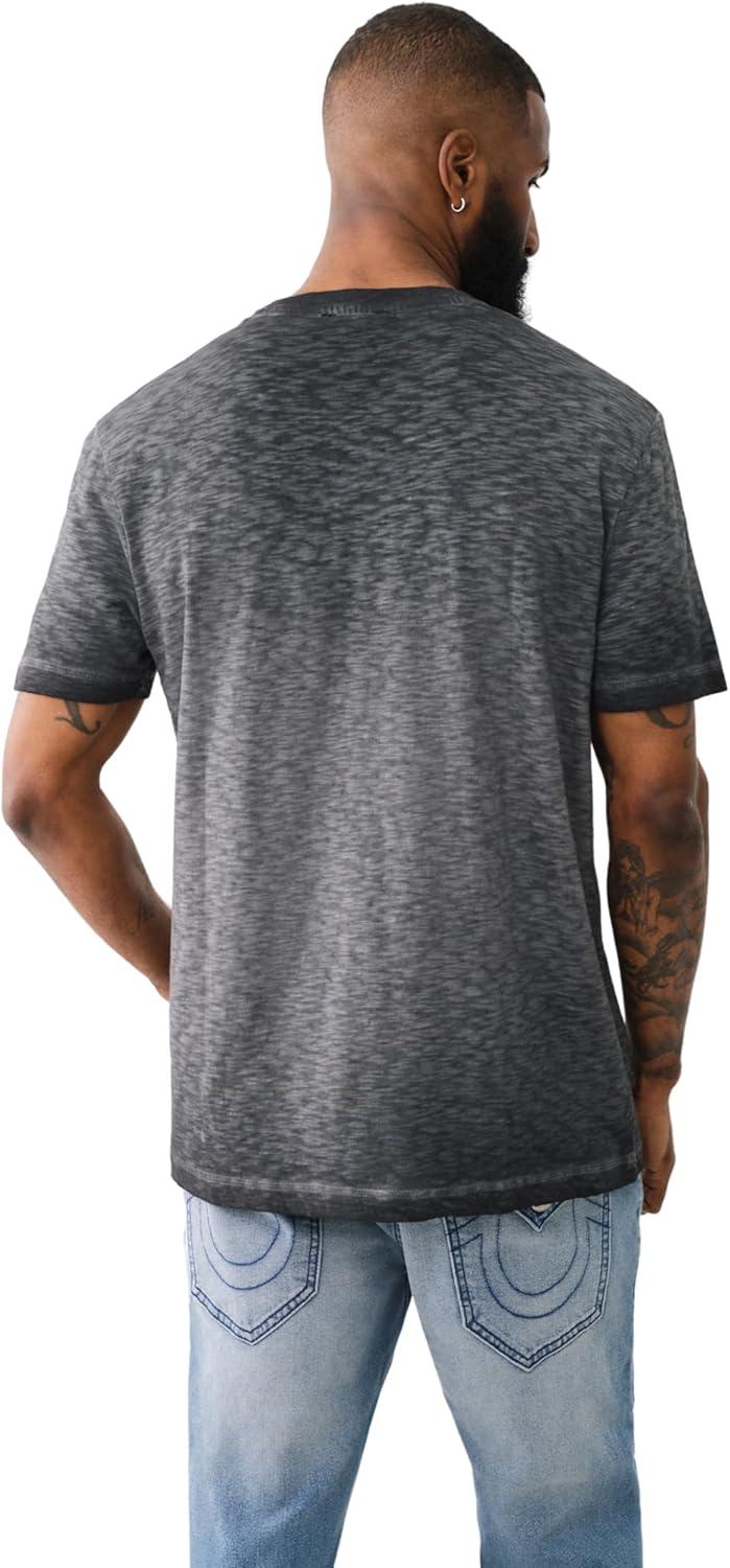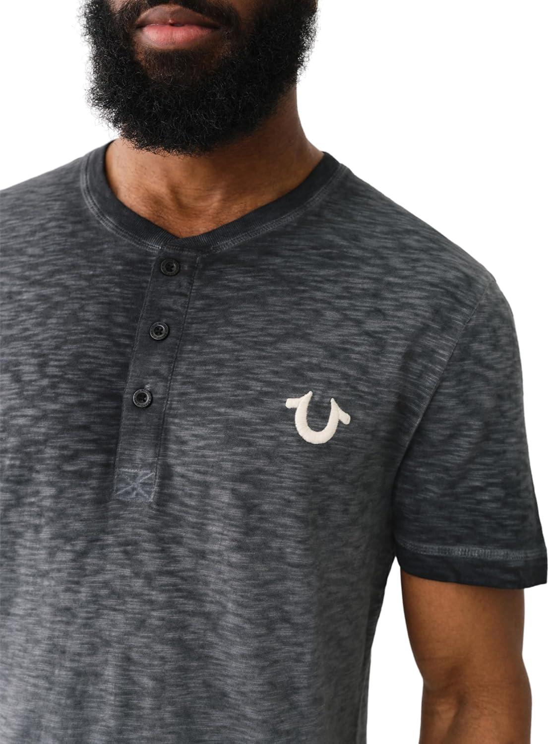 True Religion mens Ss Dyed Embro Henley(Jet Black)