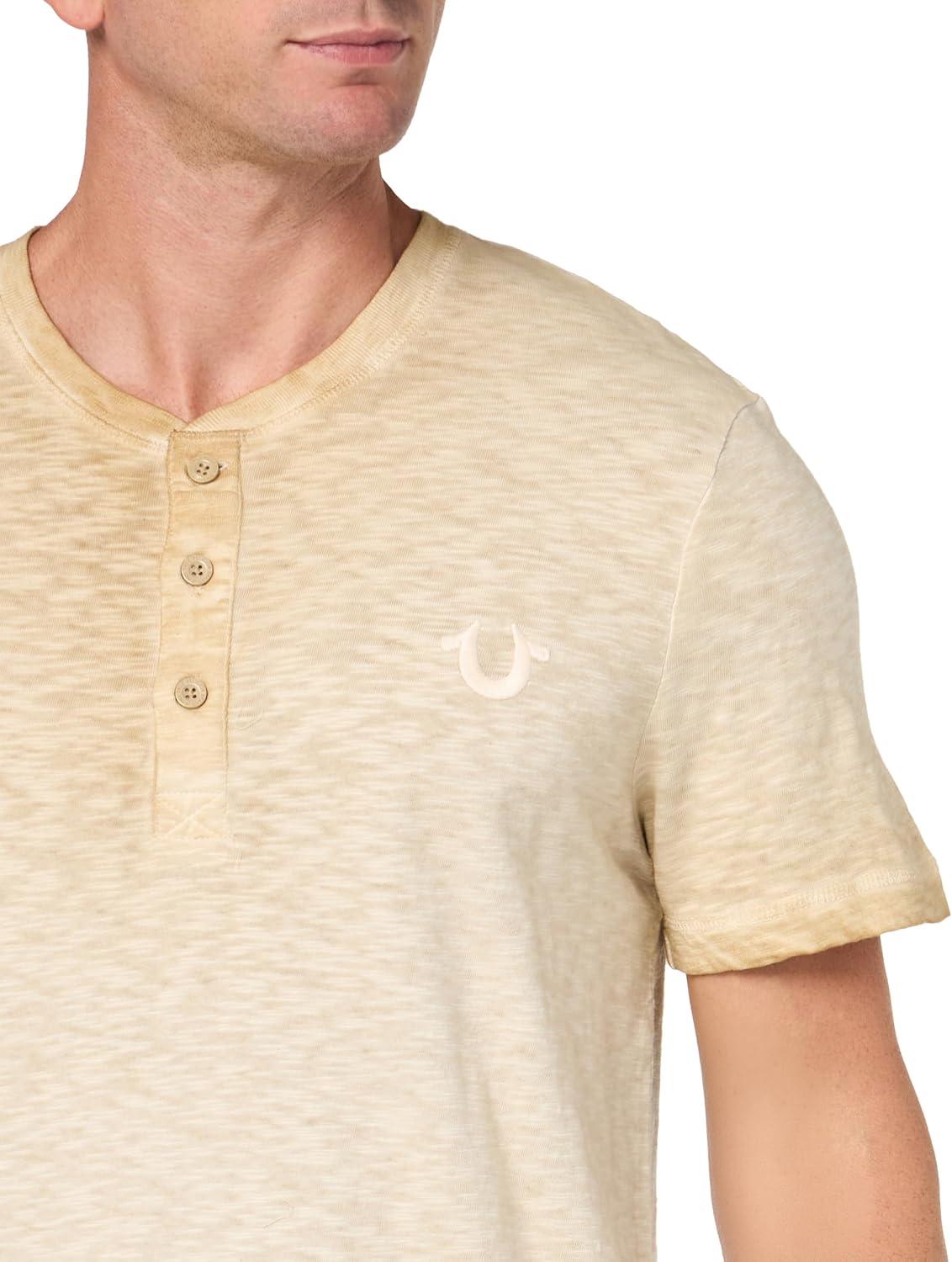 True Religion mens Ss Dyed Embro Henley(Travertine)