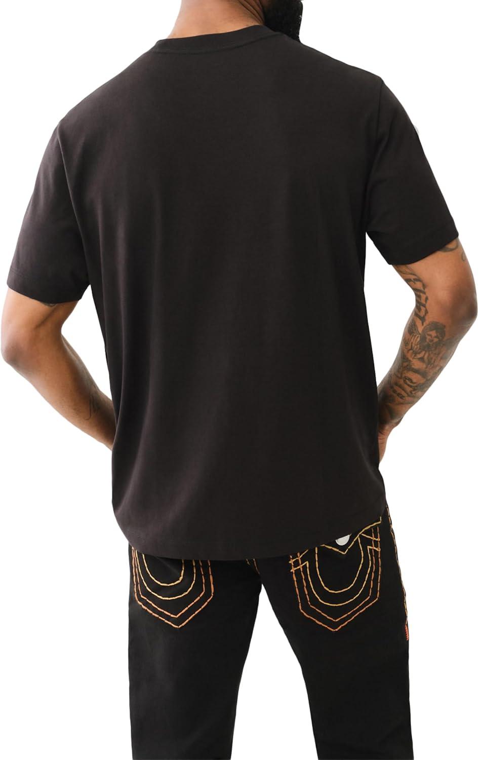 True Religion Mens Ss Fray Twill Applique Tee(Jet Black)