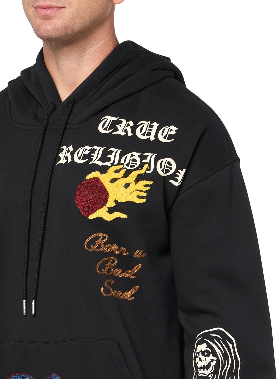 True Religion Men’s patch Embro Hoodie(Jet Black)