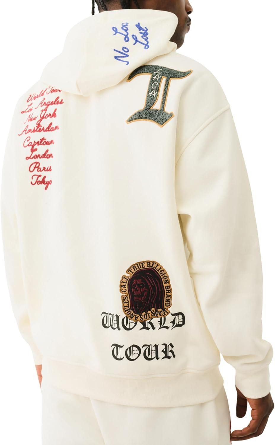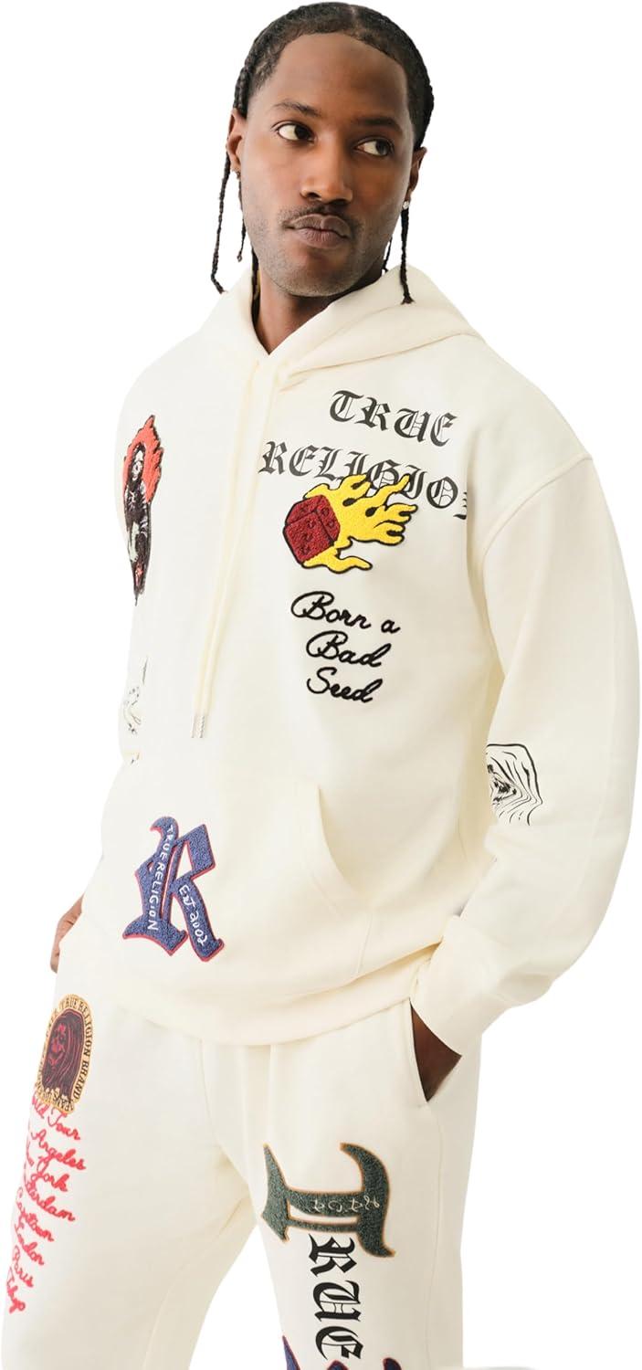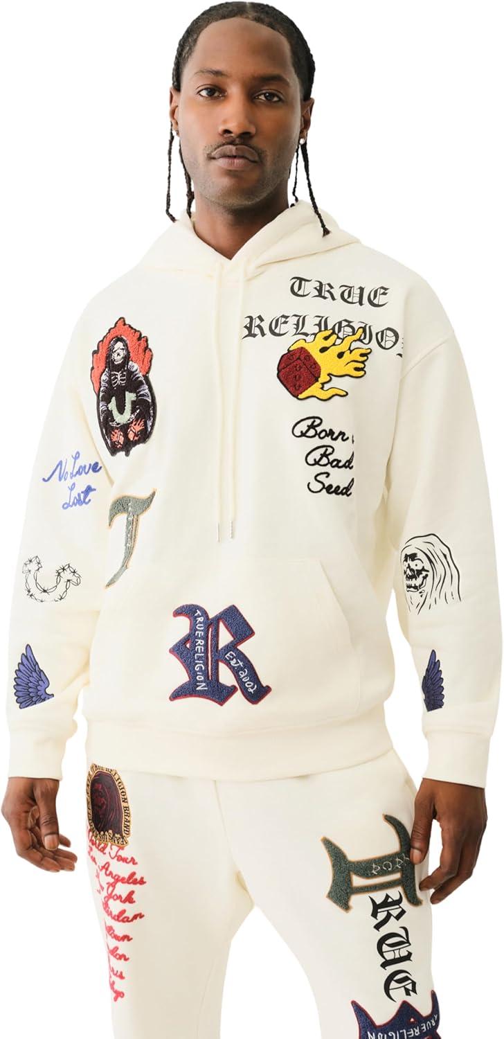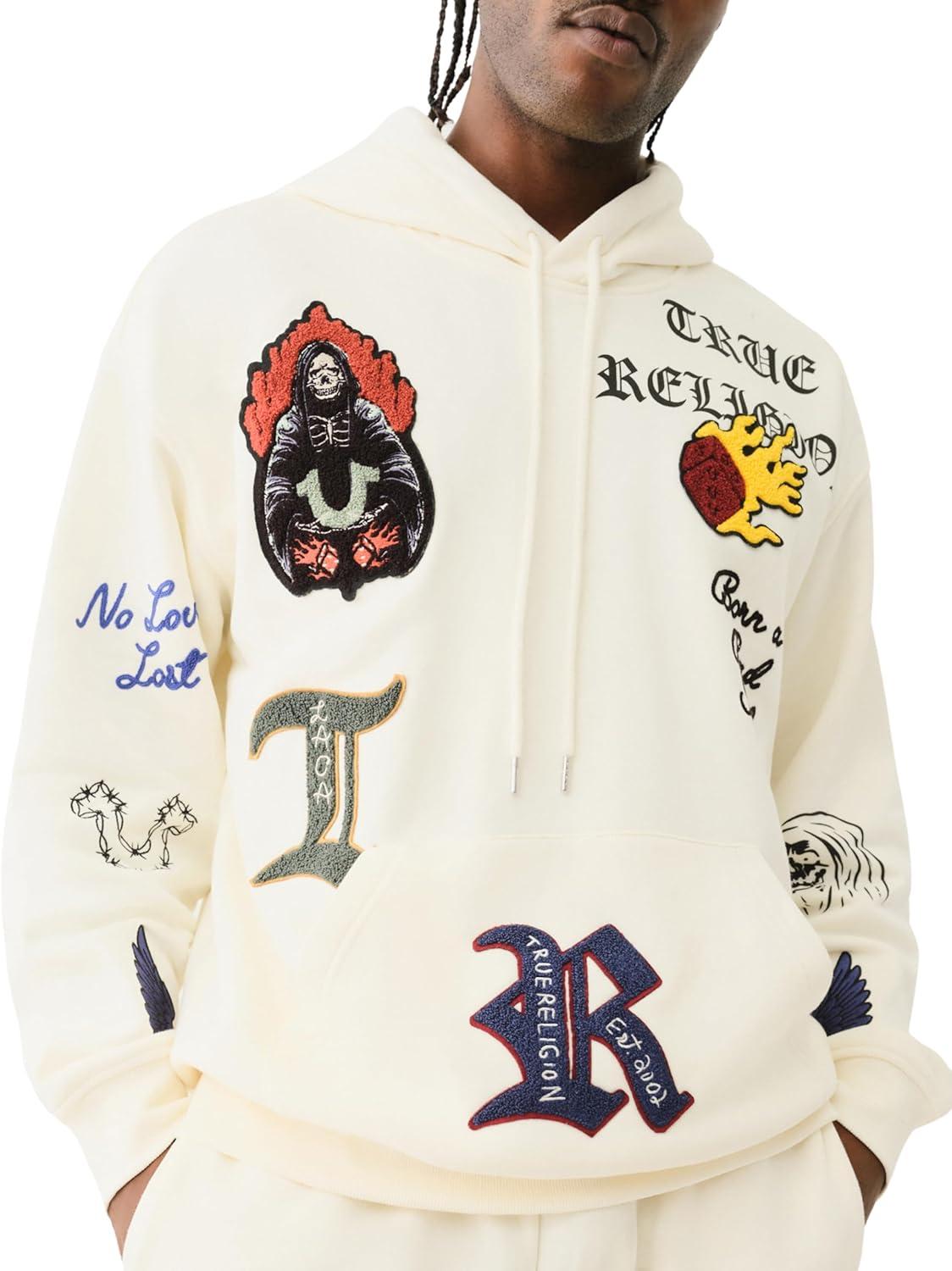 True Religion Men’s patch Embro Hoodie(Winter White)