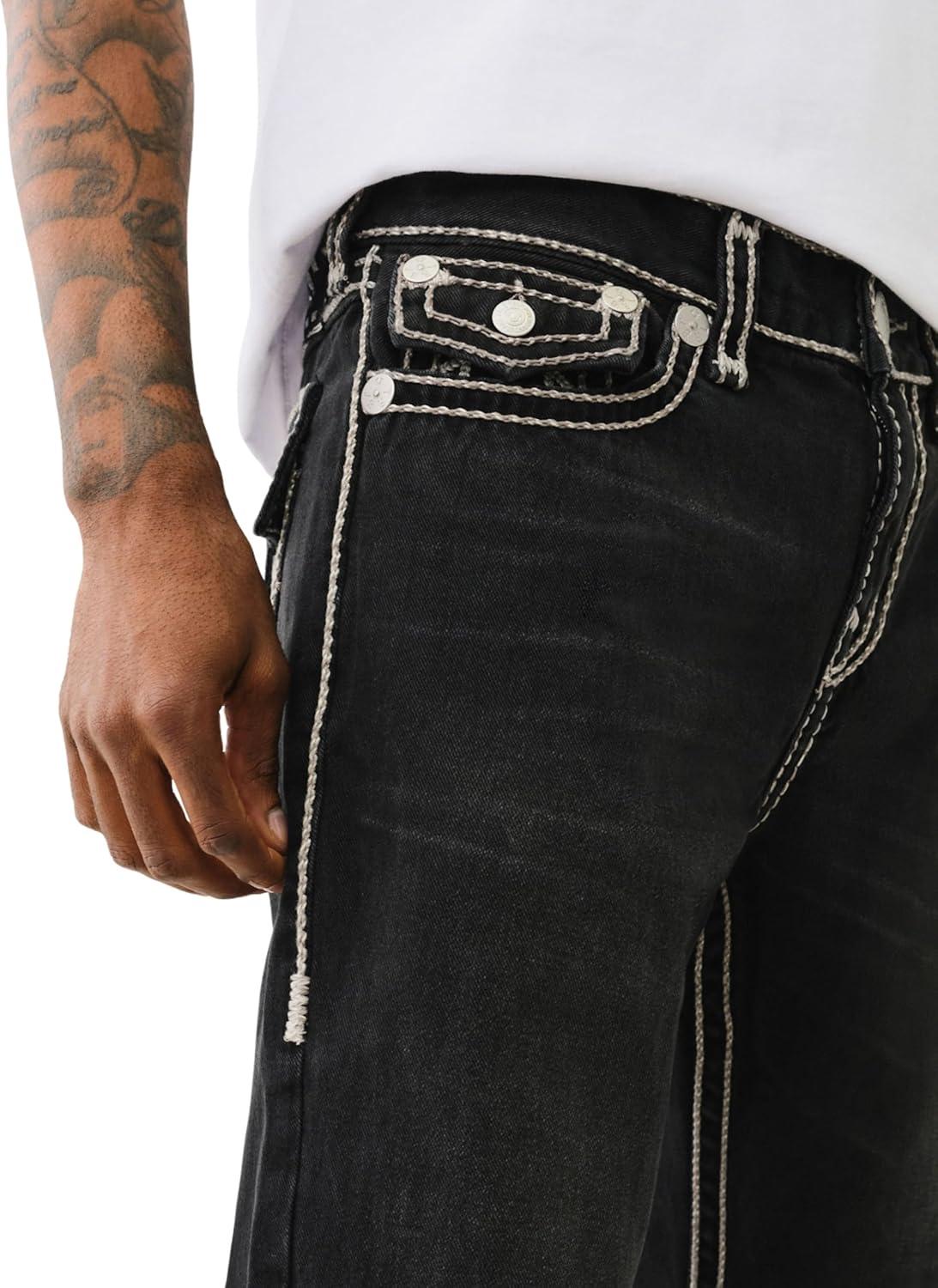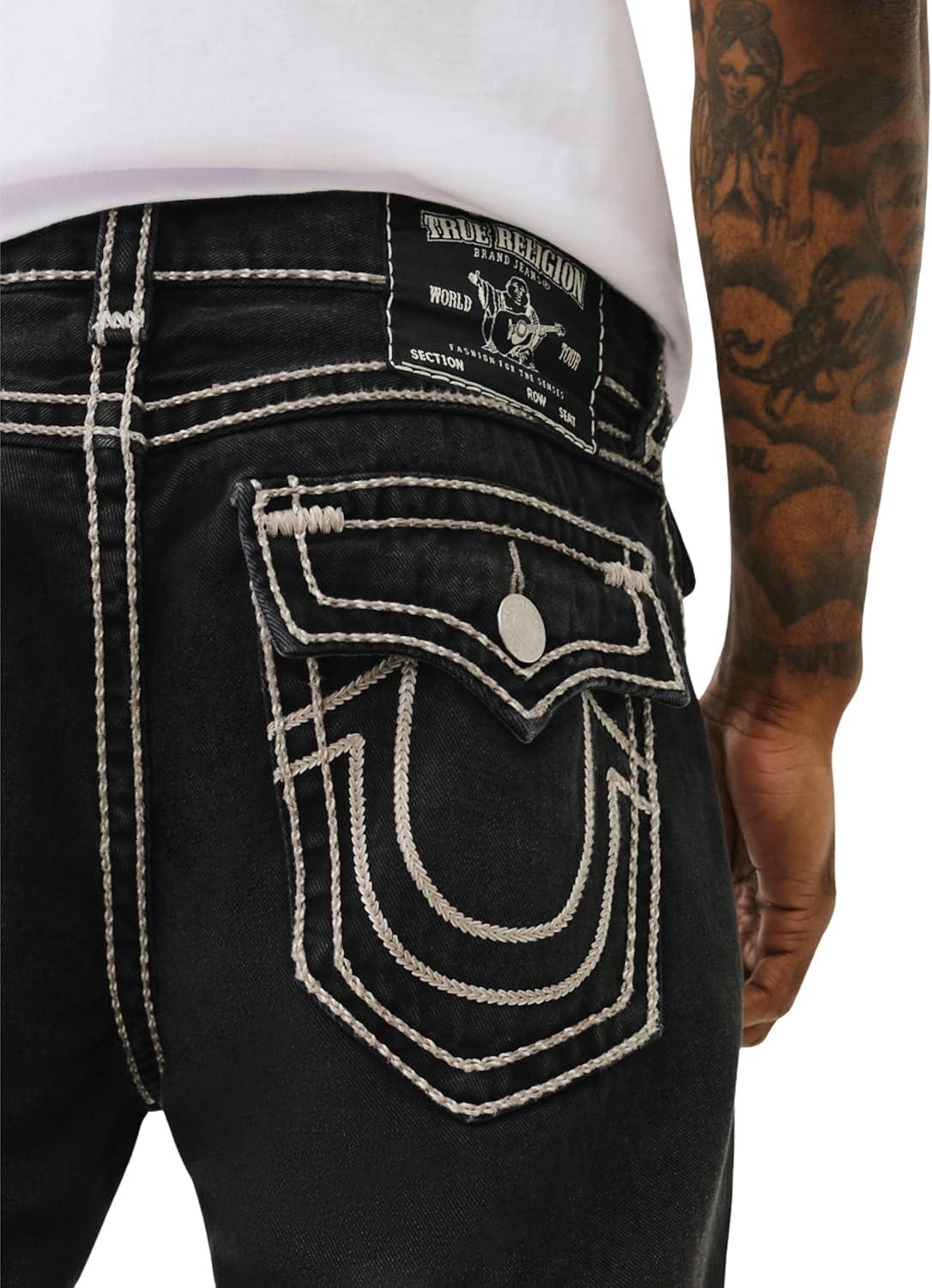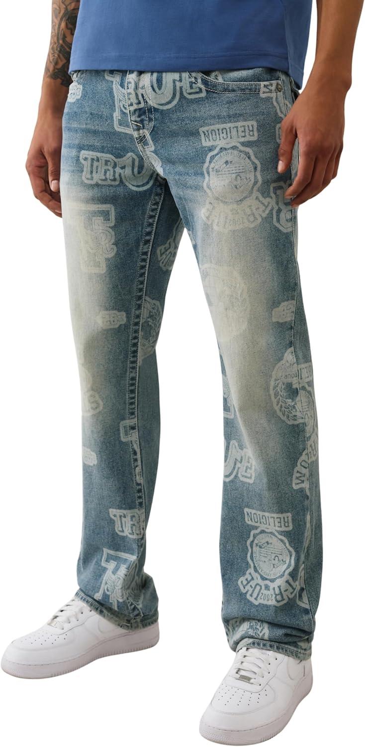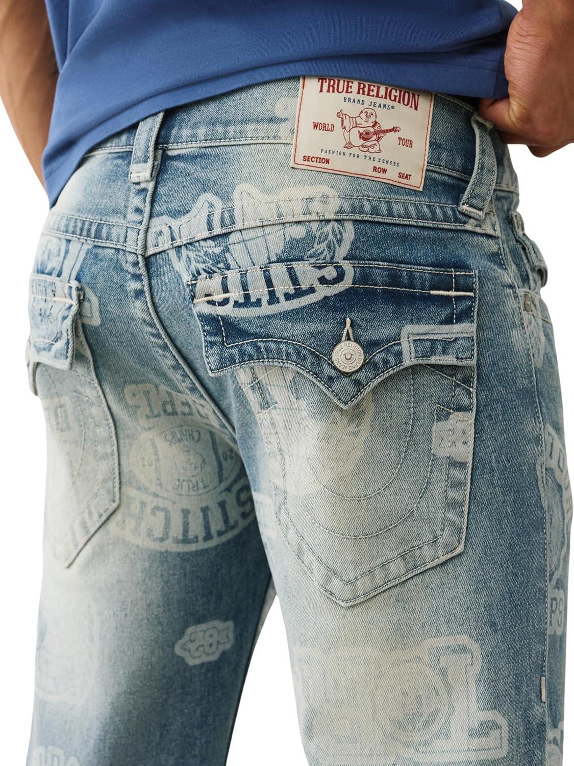 True Religion Men’s AOP Ricky SN Flap Jeans – 34″ Inseam, Flap Pockets, Contrast Stitching, Premium Denim