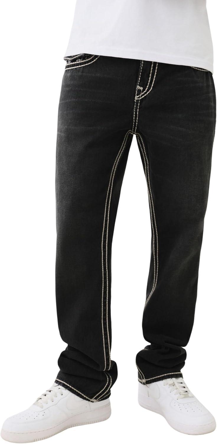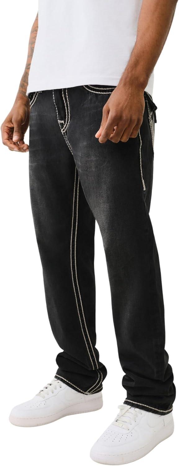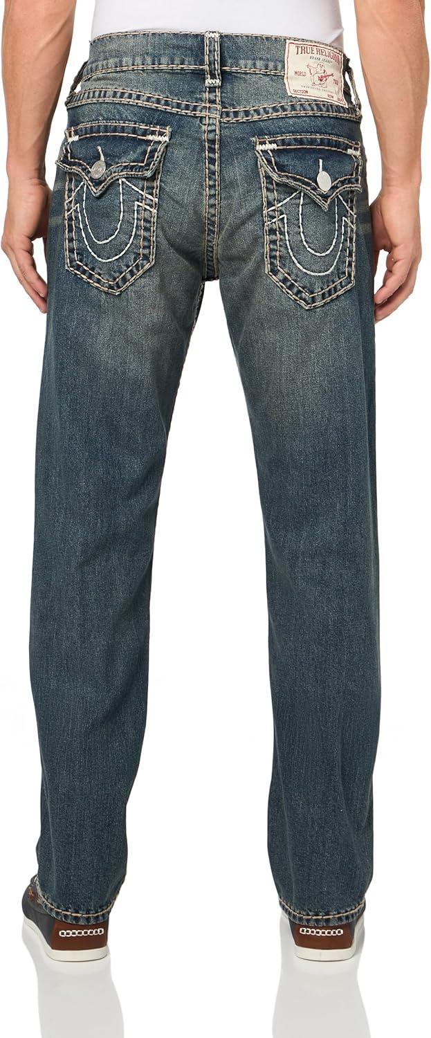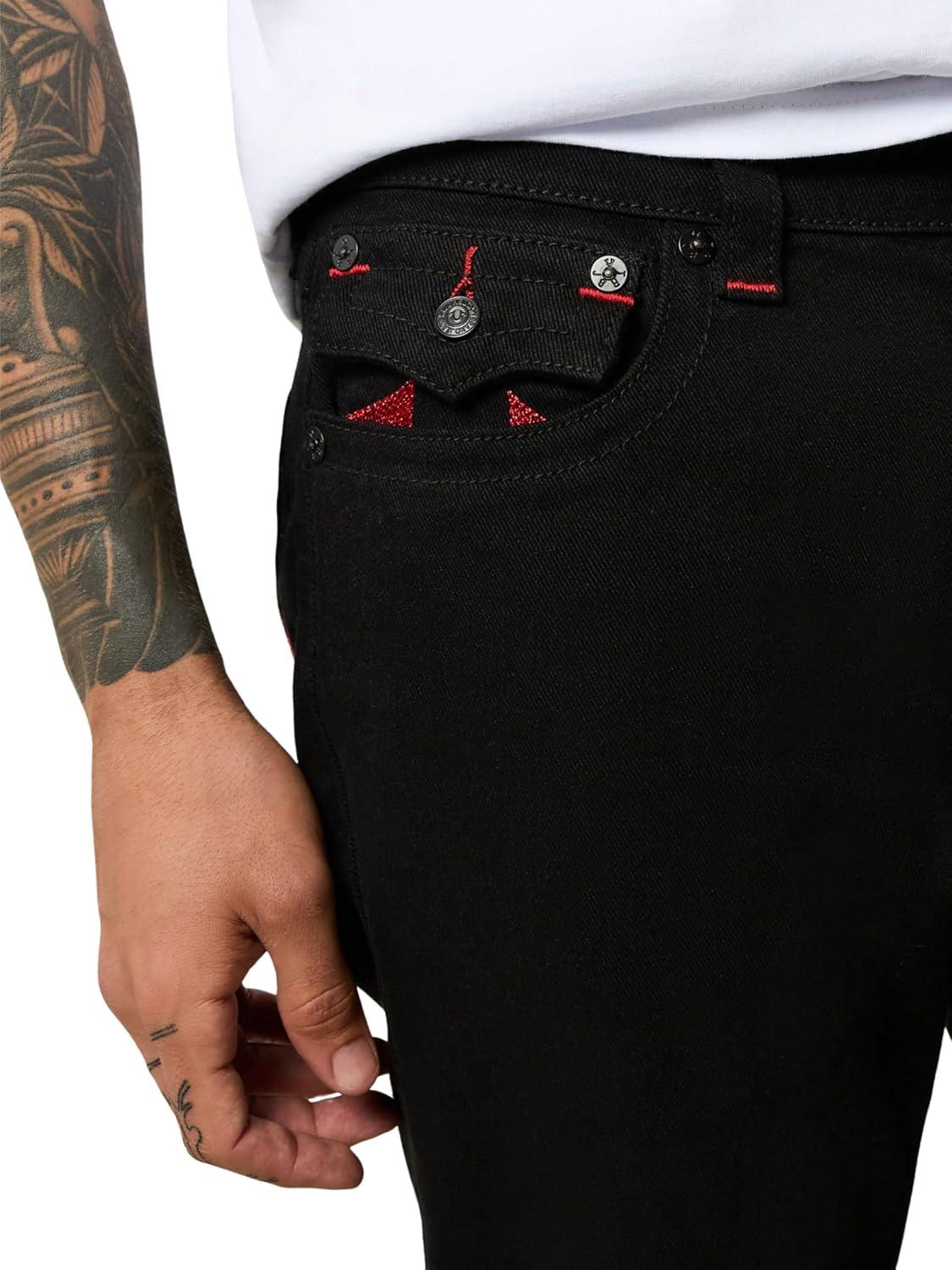 True Religion Men’s AOP Ricky SN Flap Jeans – 34″ Inseam, Flap Pockets, Contrast Stitching, Premium Denim