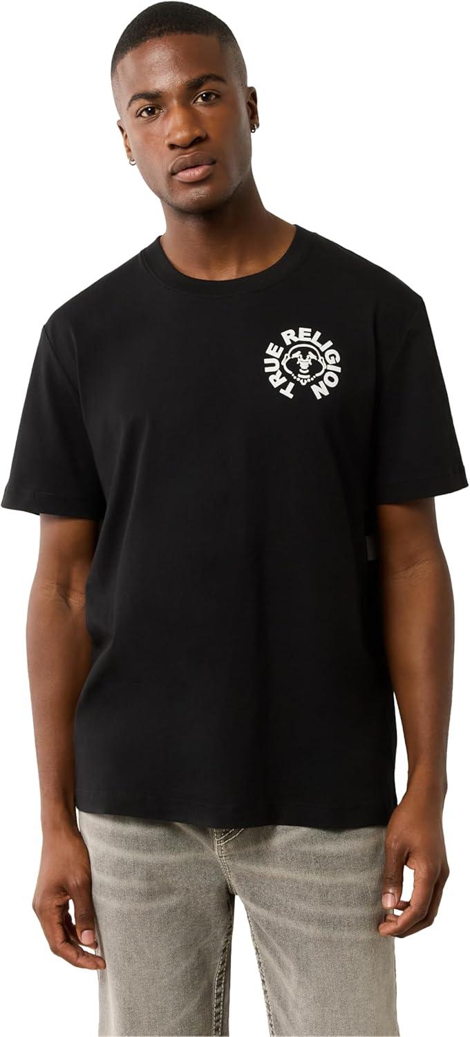 True Religion Men’s Short Sleeve Buddha Face Tee – Men’s T-Shirts, Graphic Tees for Men(Jet Black)
