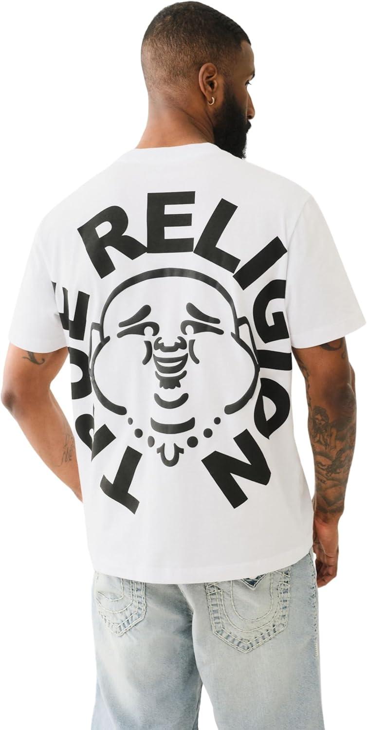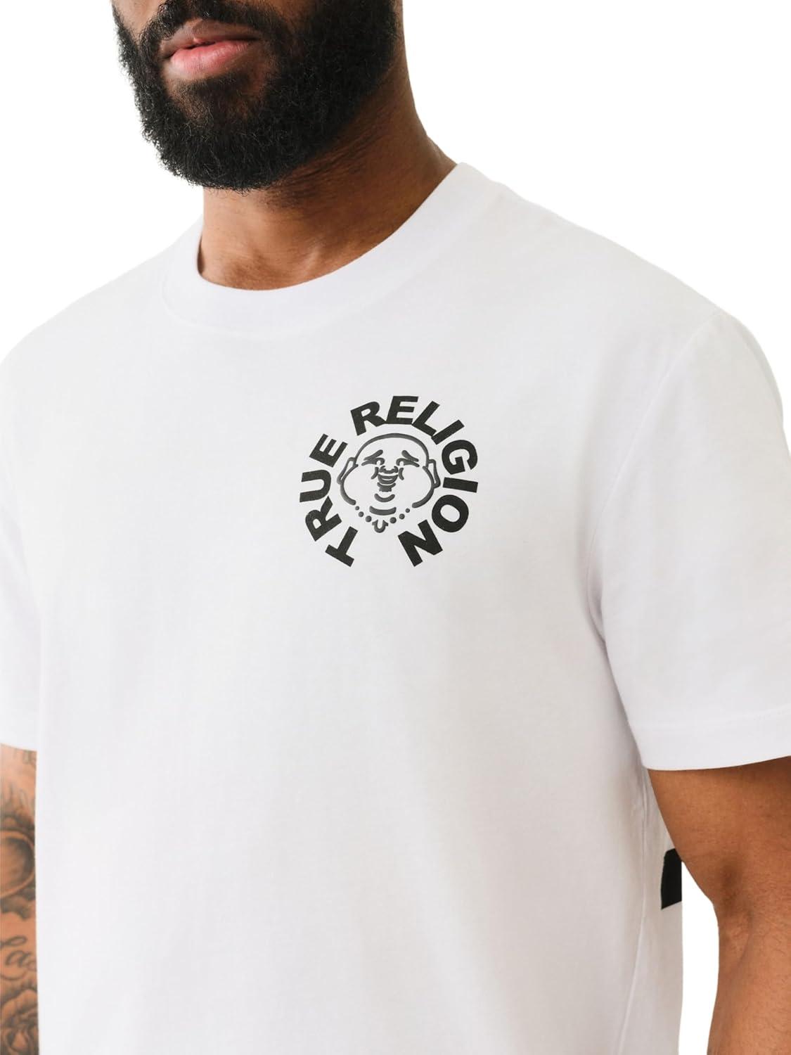 True Religion Men’s Short Sleeve Buddha Face Tee – Men’s T-Shirts, Graphic Tees for Men(Optic White)