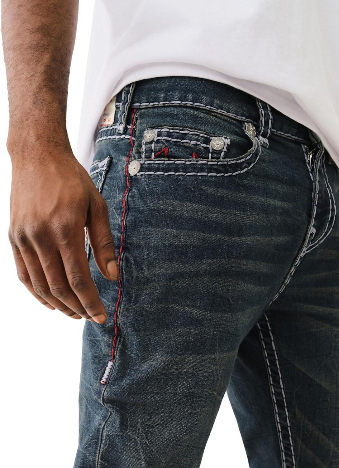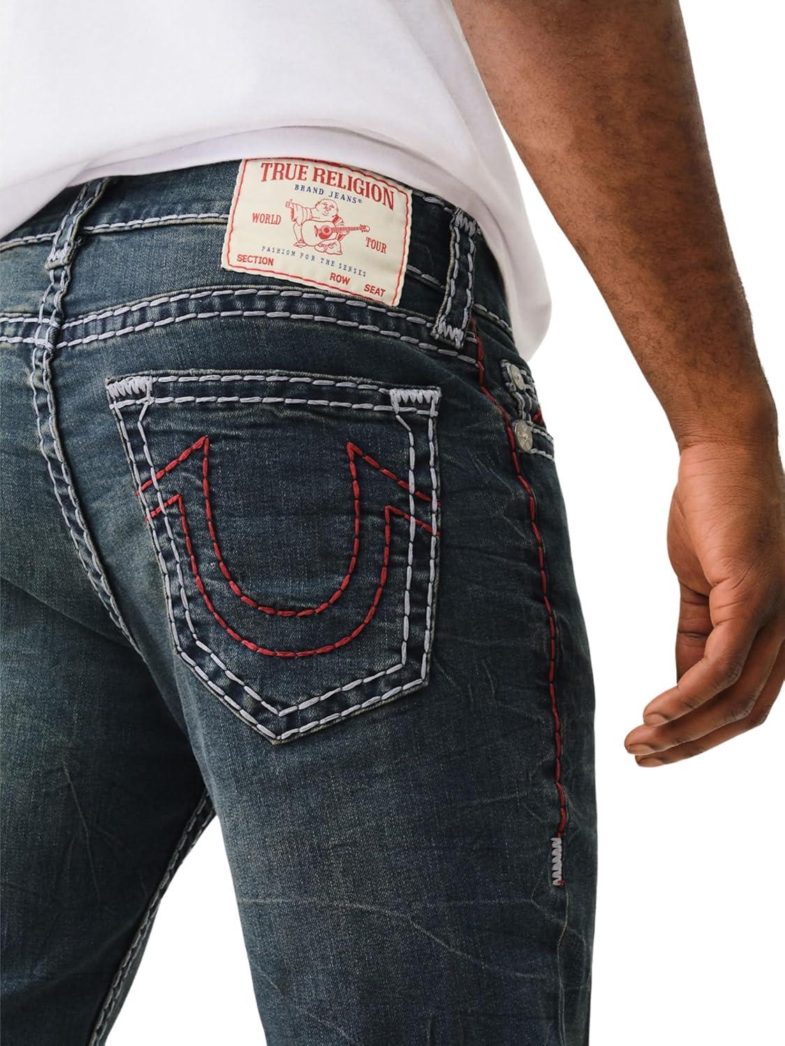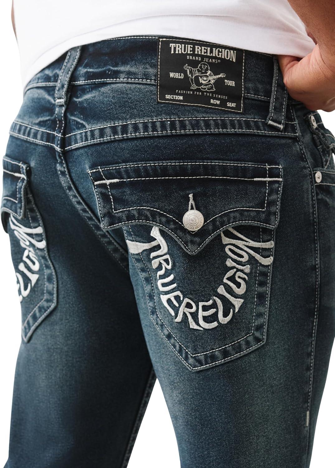 True Religion Ricky Super T Flap Men’s Jeans – Denim Pants with Iconic Stitching & Flap Pockets