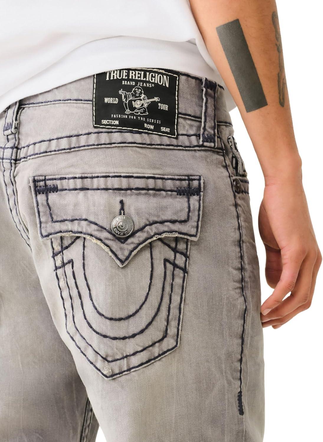 True Religion Ricky Super QT Jeans for Men – 34” – Men’s Denim(Gritstone Grey Wash)