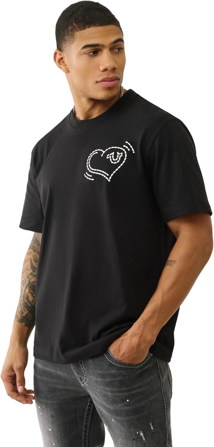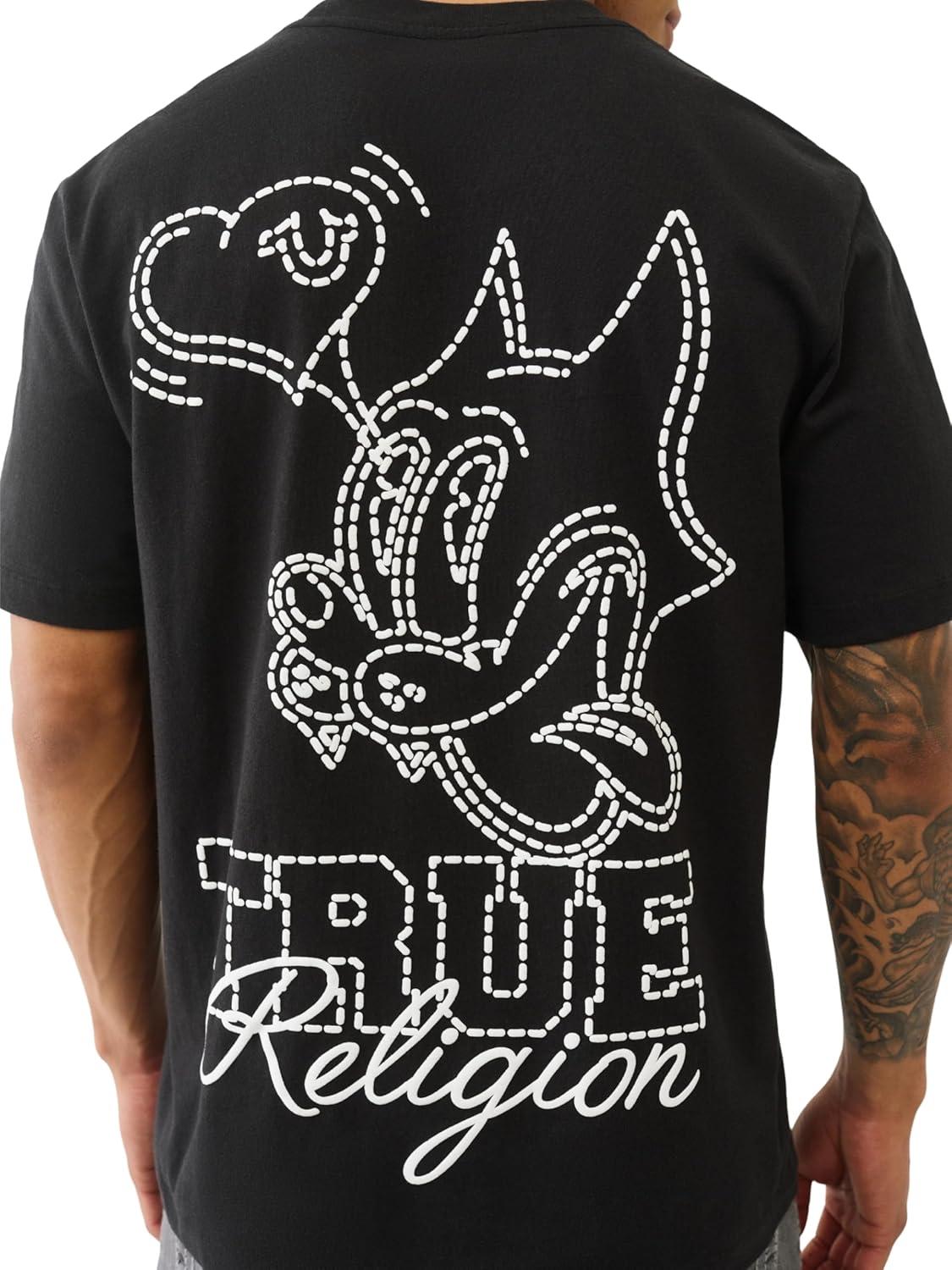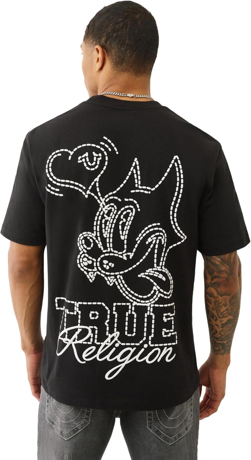 True Religion SS World Tour Champs Tee – Men’s Graphic T-Shirt in 100% Cotton, Crew Neck Short Sleeve Shirt(Jet Black)