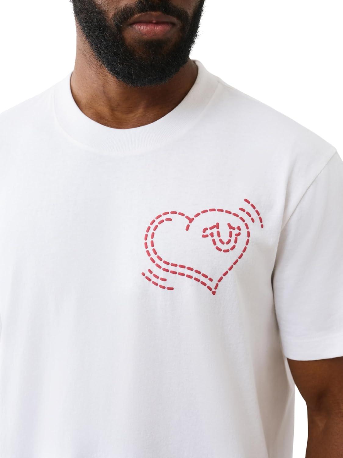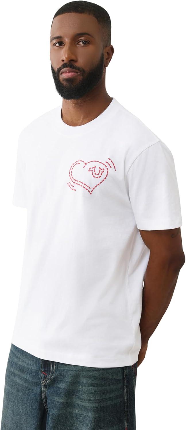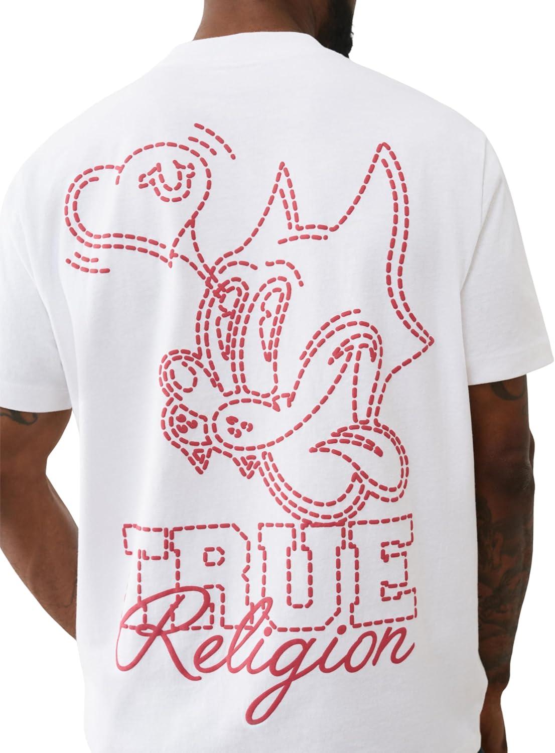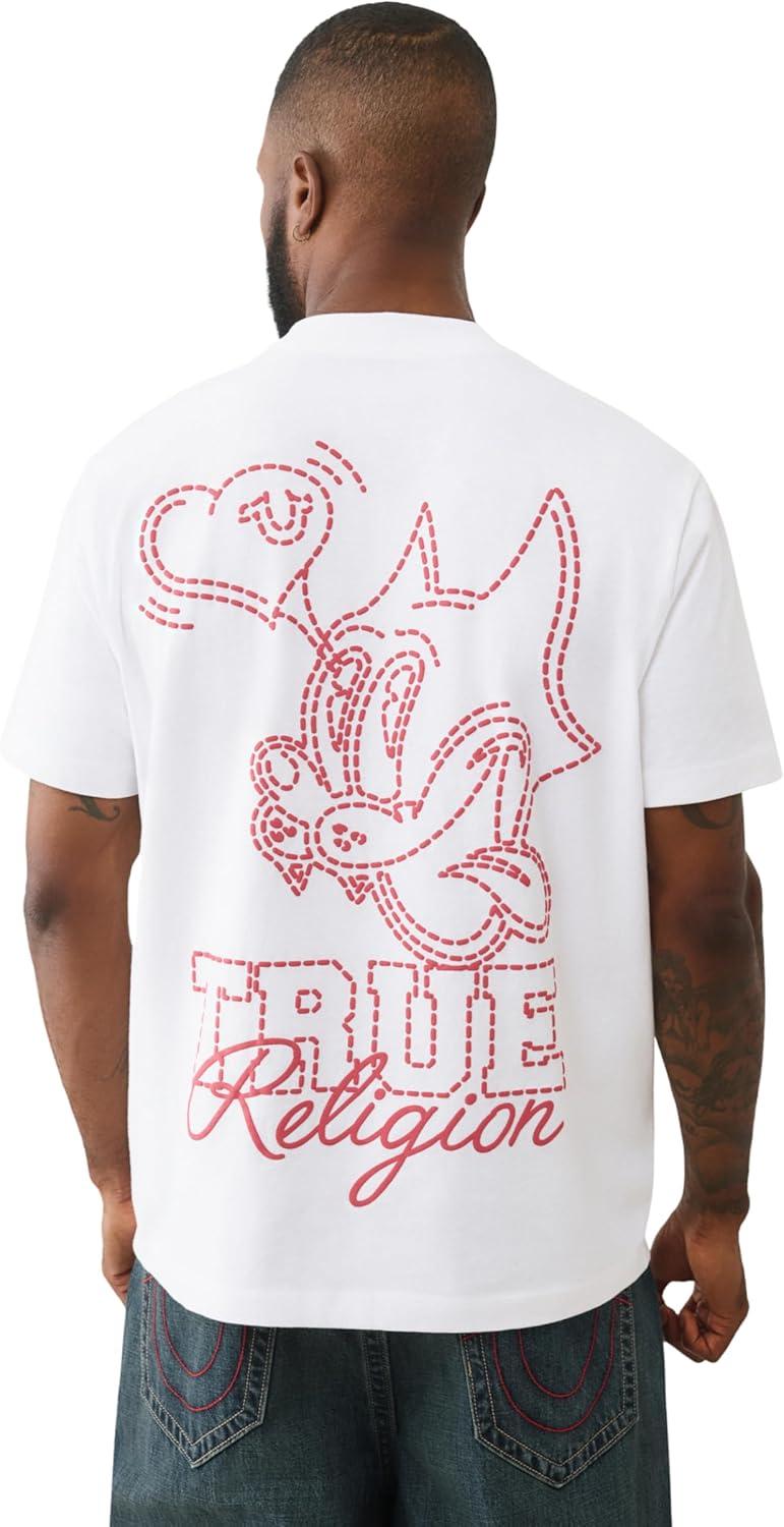 True Religion SS Puff Cat Tee – Men’s Crewneck Short Sleeve Graphic Premium Cotton Tee(Optic White)