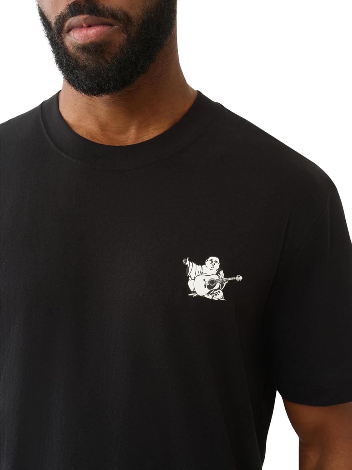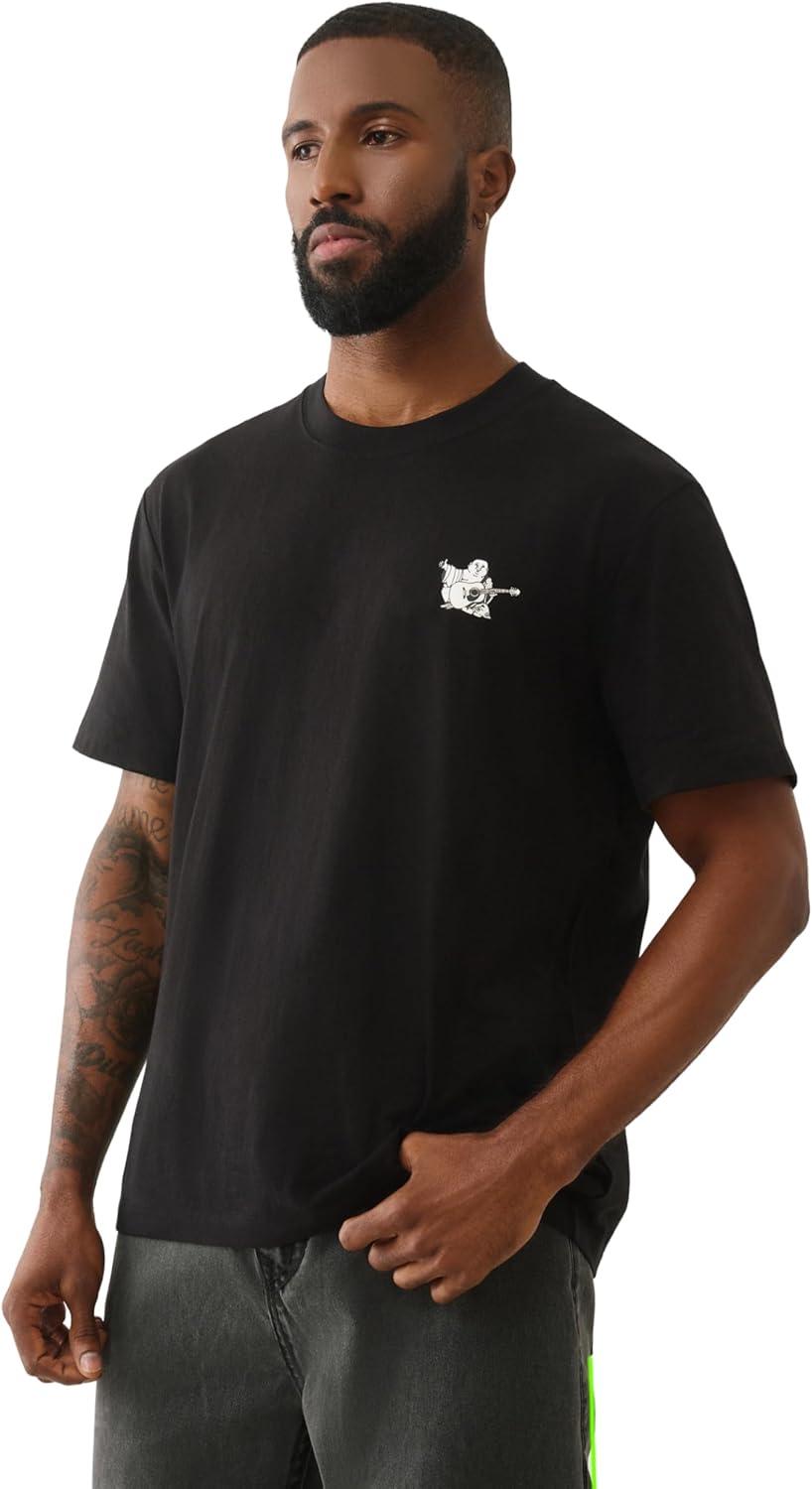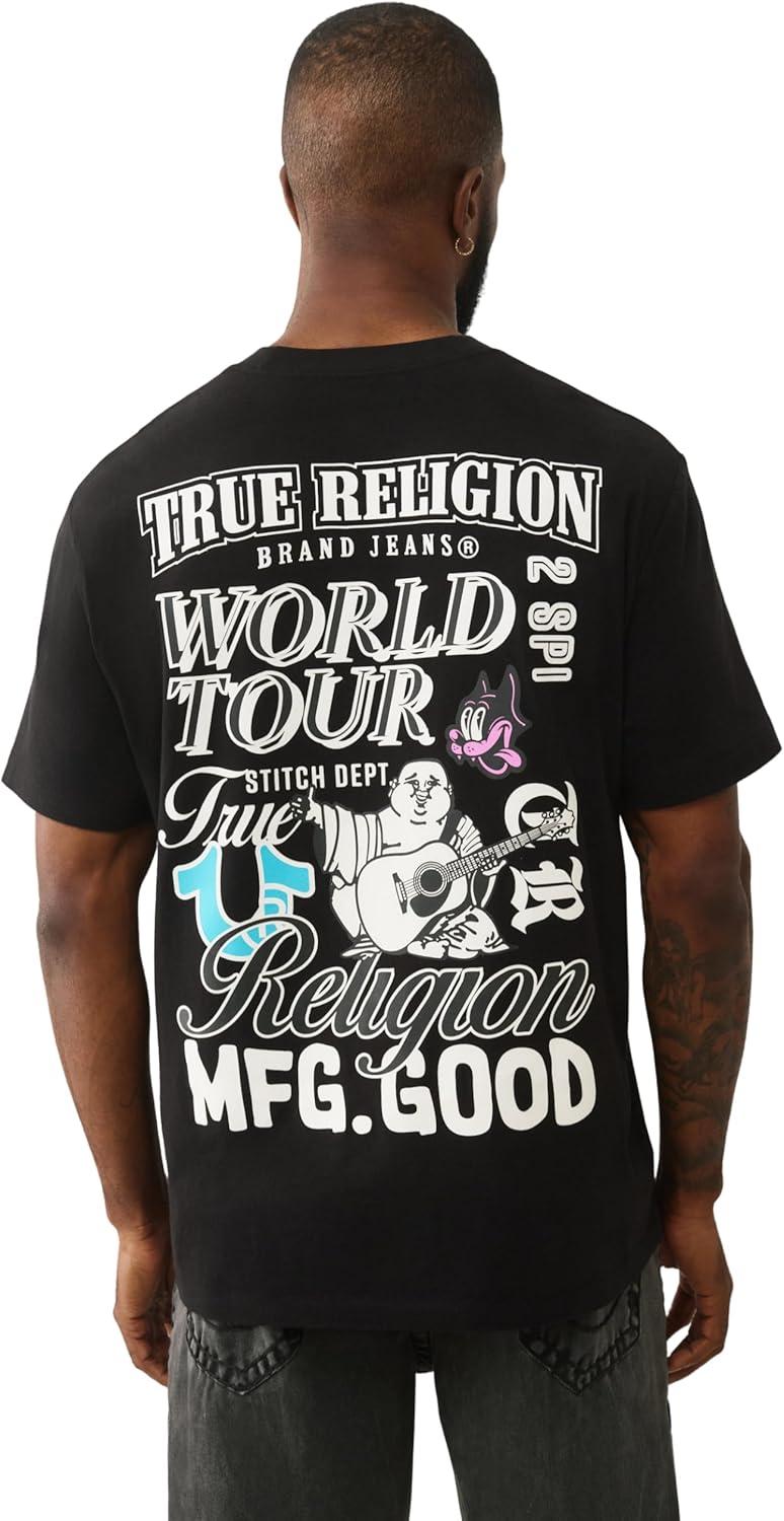 True Religion World Tour Tee – Men’s Graphic T-Shirt – Short Sleeve Cotton Crewneck Logo Top(Jet Black)