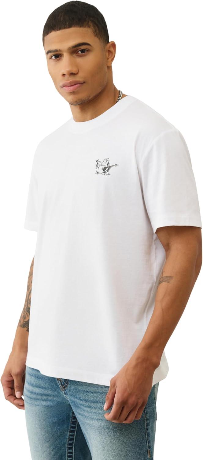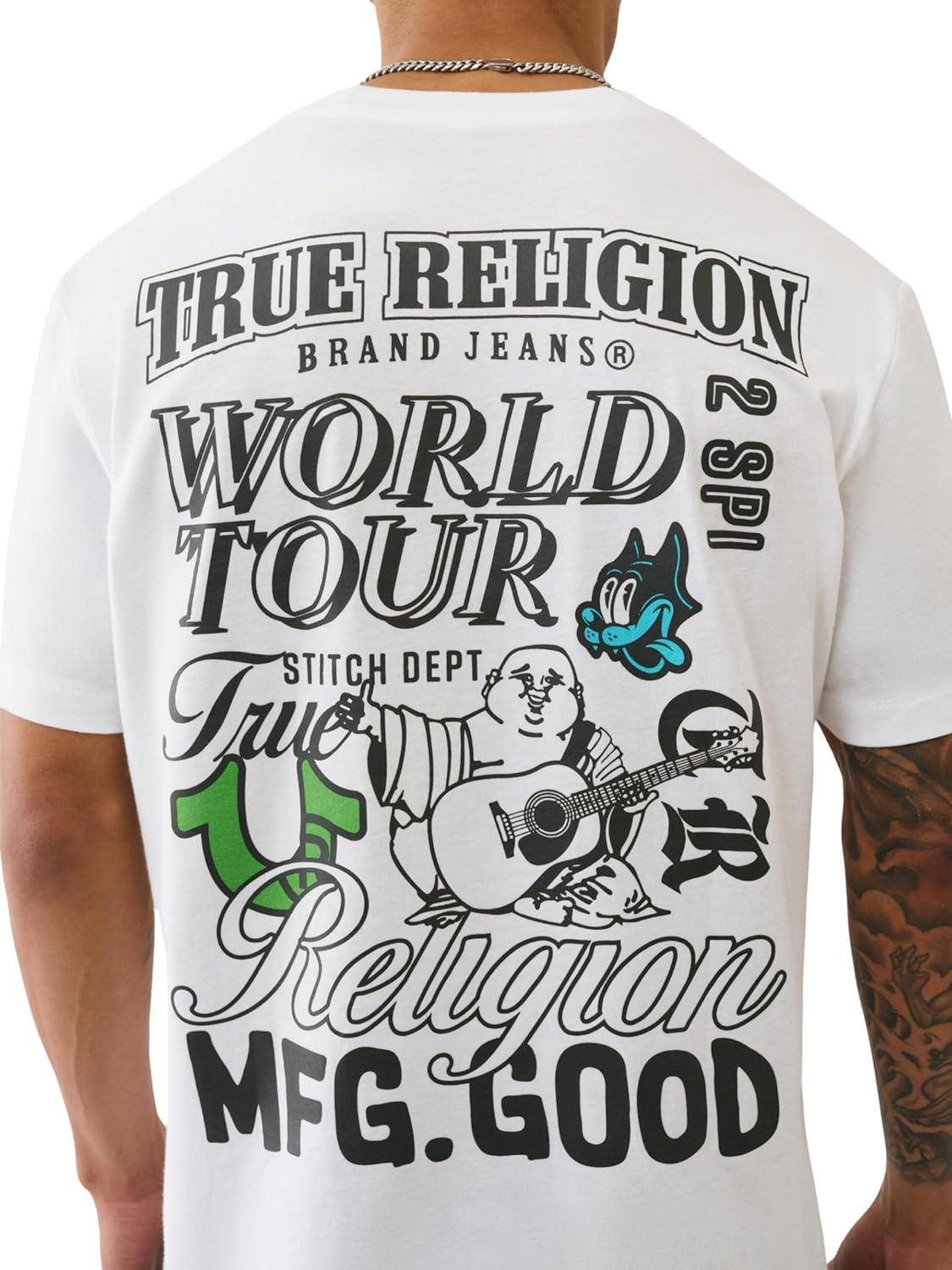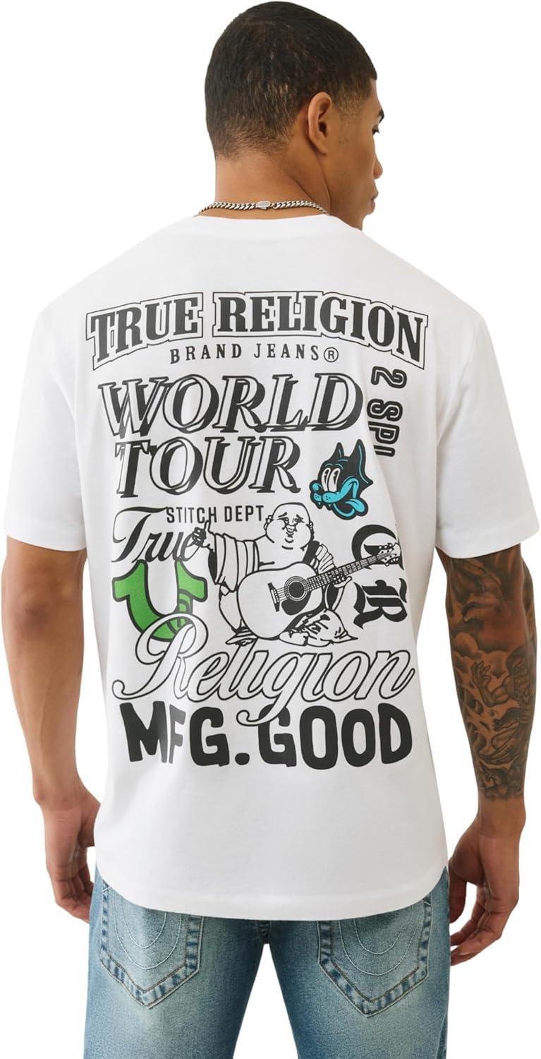 True Religion World Tour Tee – Men’s Graphic T-Shirt – Short Sleeve Cotton Crewneck Logo Top(Optic White)