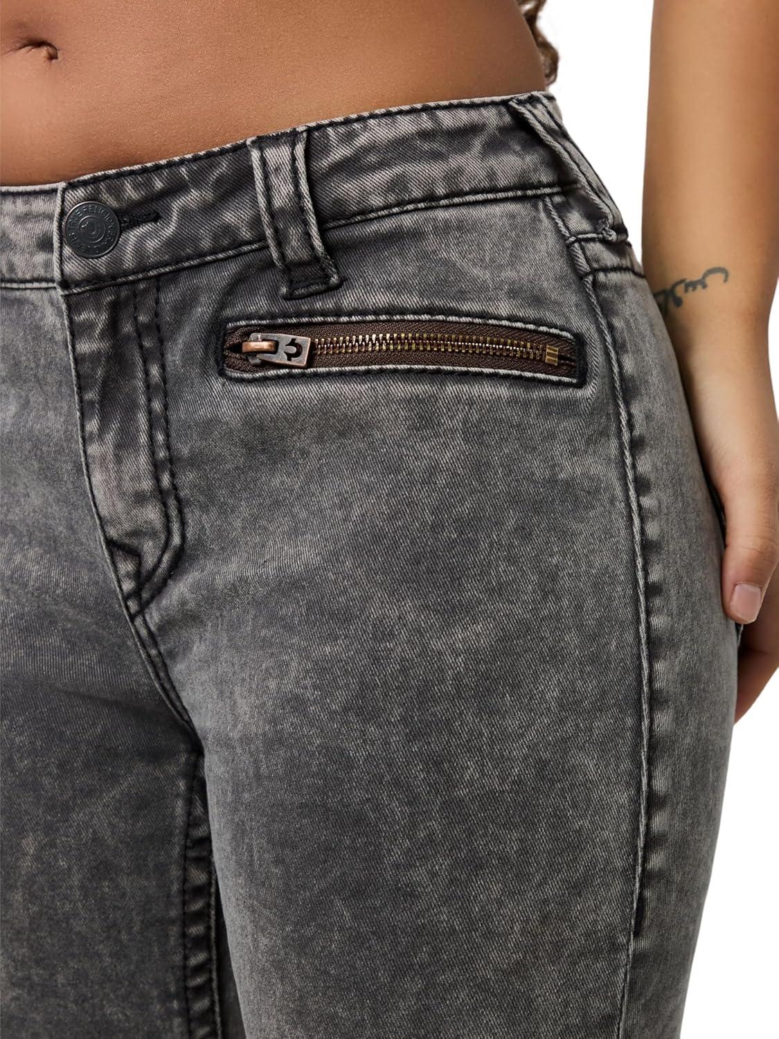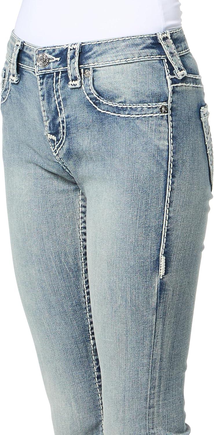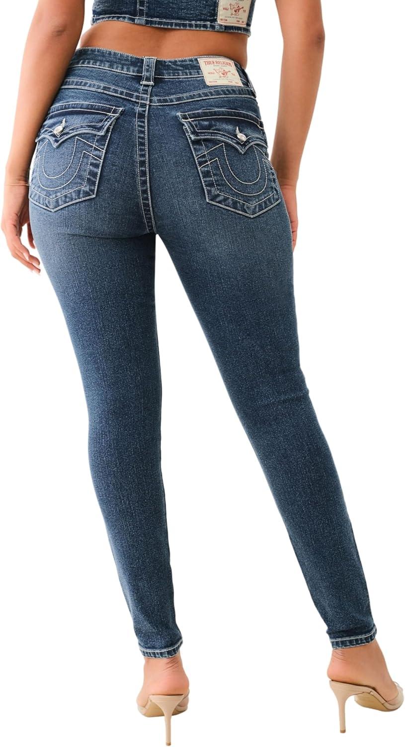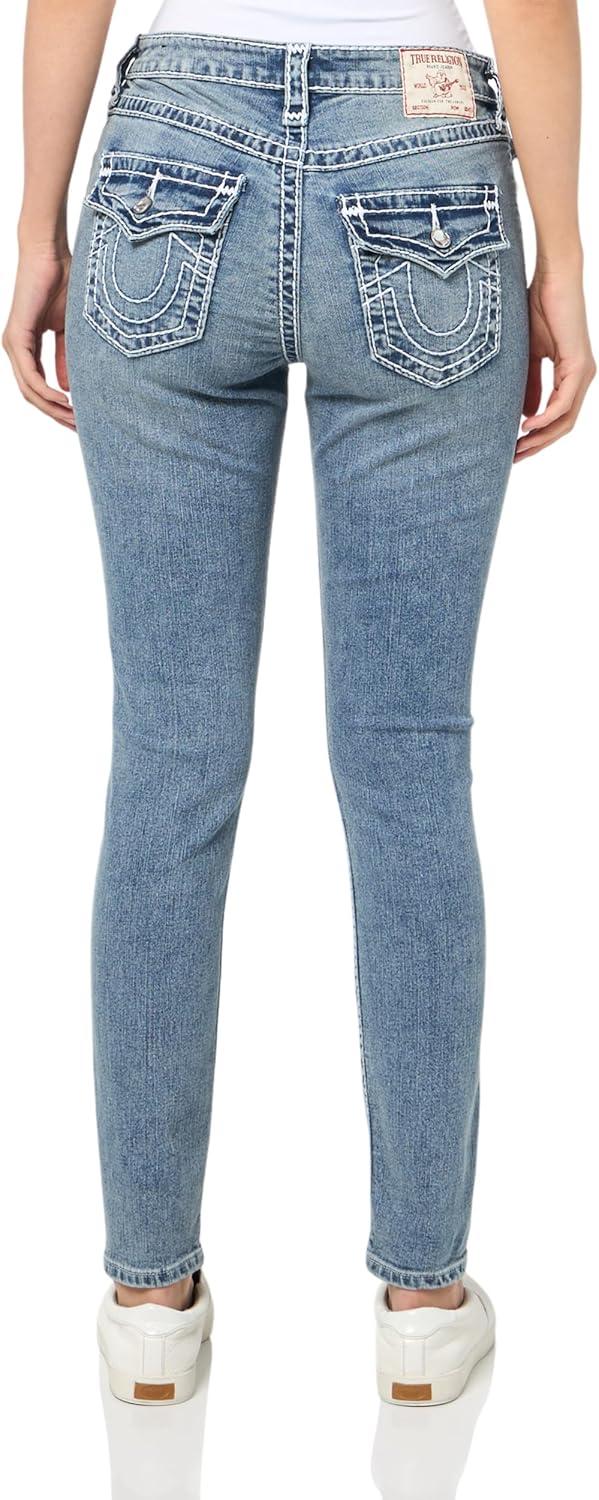 True Religion Women’s Crystal Halle Mid Rise Skinny Flap Jeans Super T Stitching(Peak Spot)