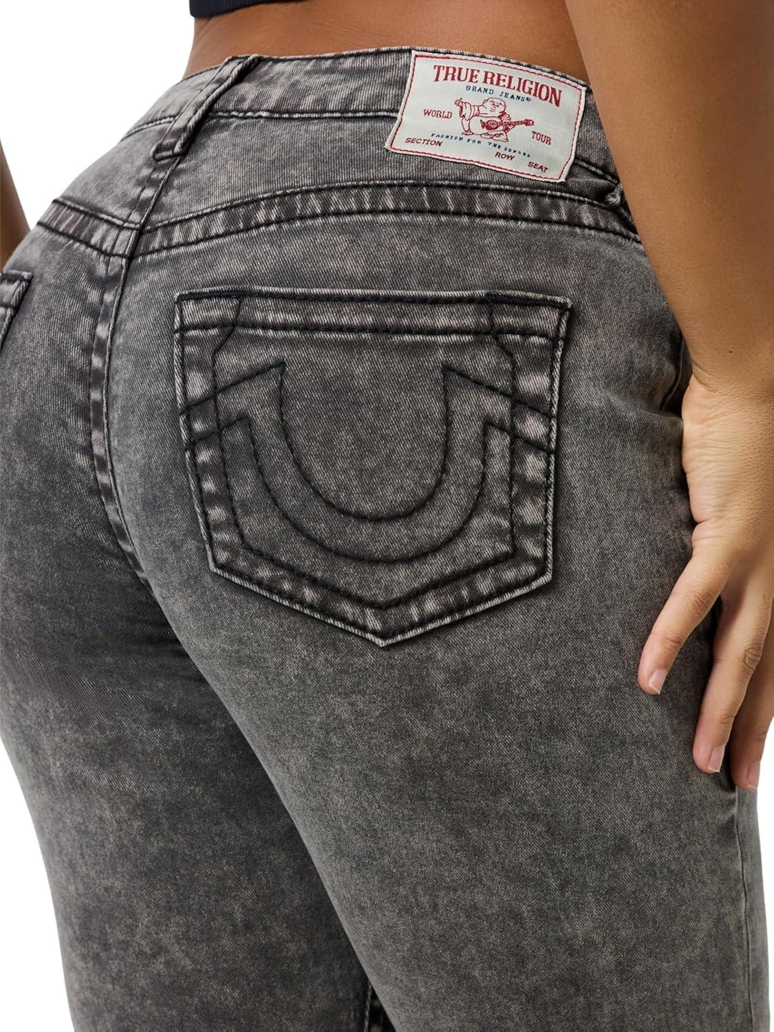 True Religion Women’s Crystal Becca Low Rise Boot Jeans- Super T Stitching(Nora)