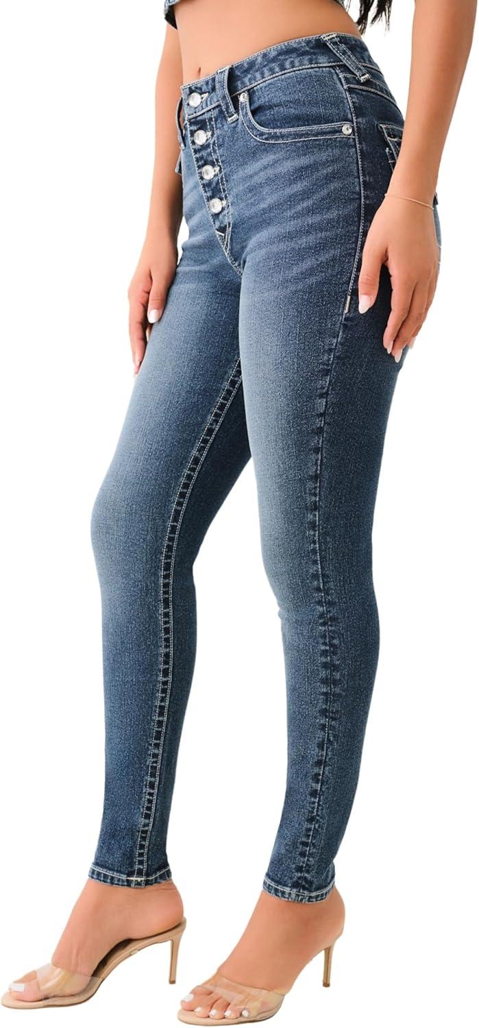 True Religion Women’s Crystal Jennie High Rise Curvy Skinny Jeans with Flap Pockets and SN Stitching(Contera)