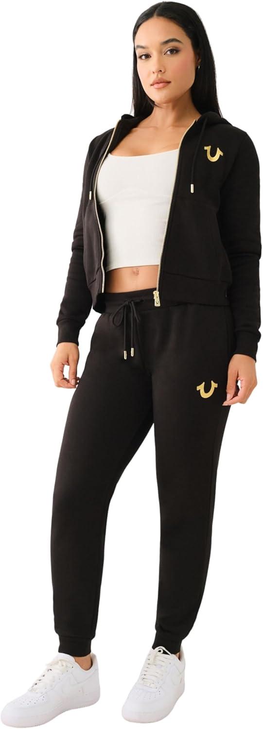True Religion Women’s Foil Classic Lounge Jogger Comfort Pant(Jet Black)