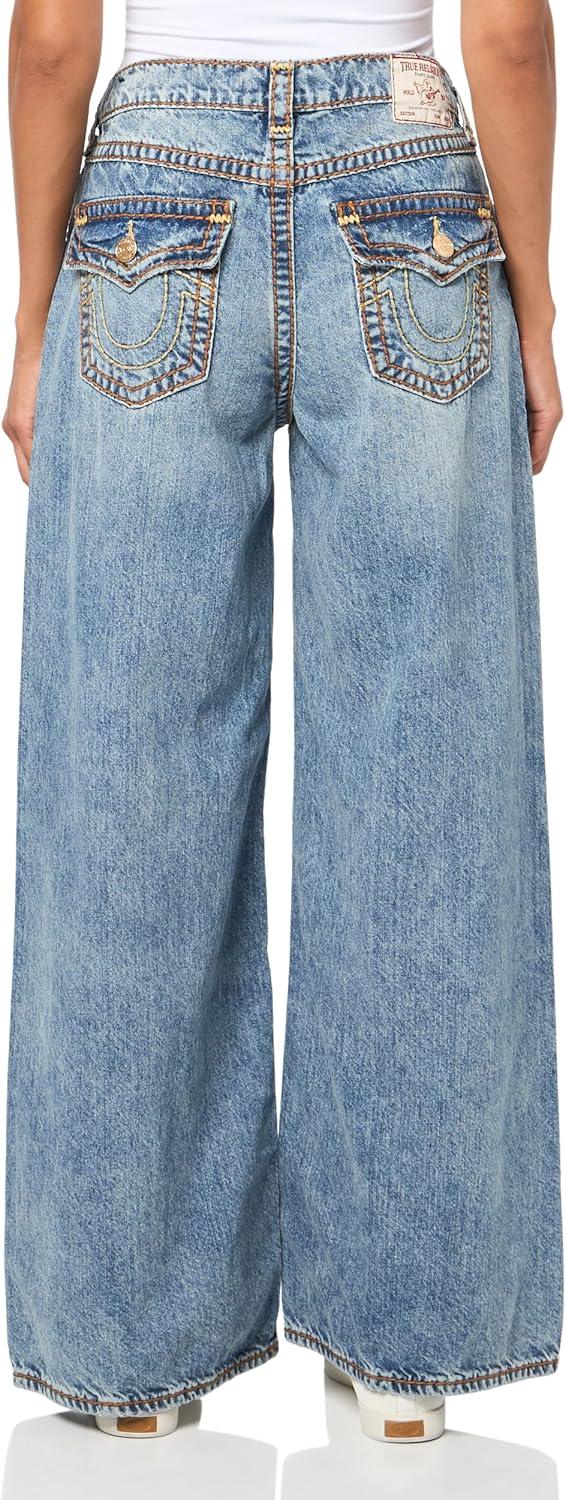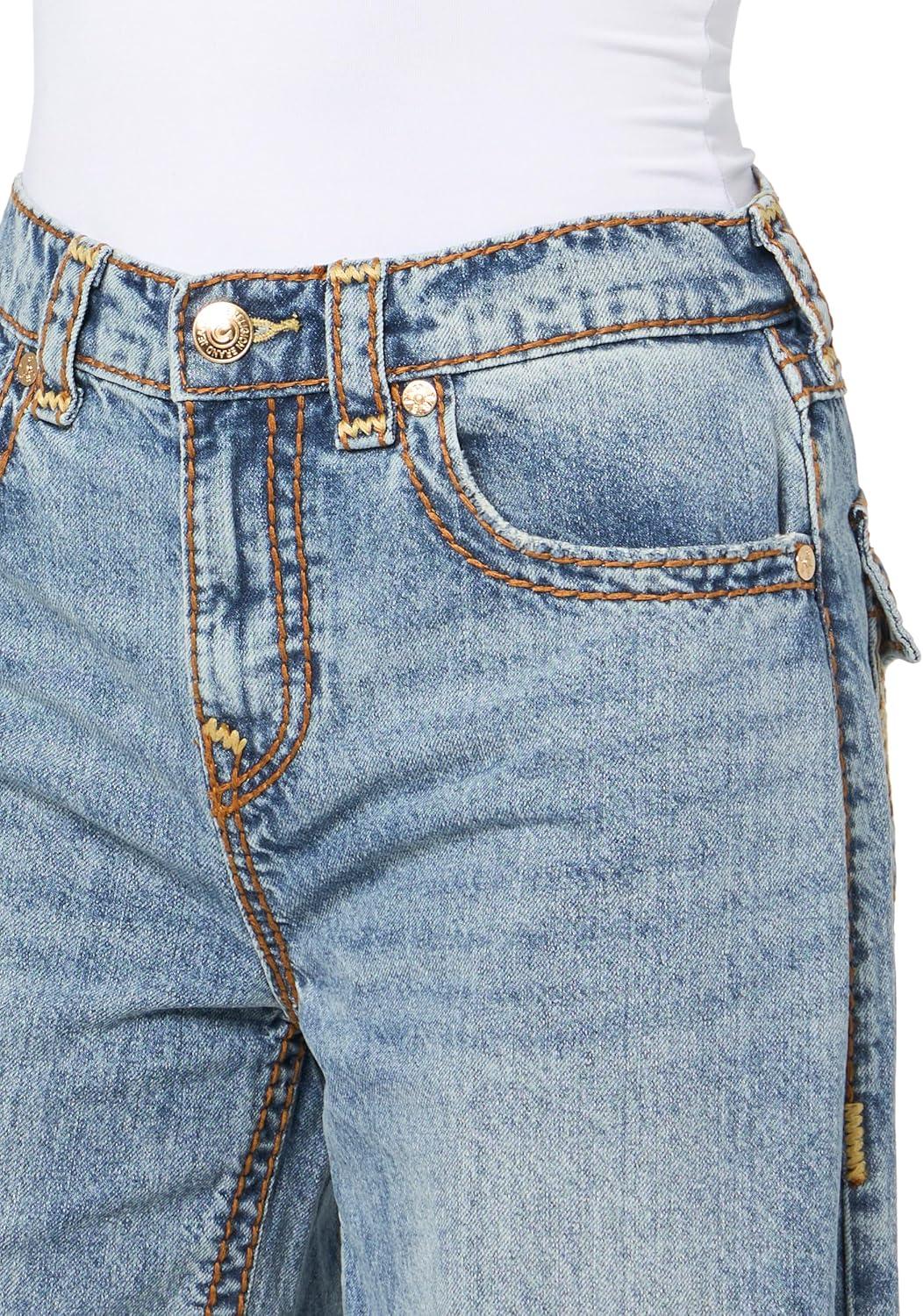 True Religion Women’s Jessie Baggy Jeans with Super T Stitching and Flap Pockets(Peak Spot)