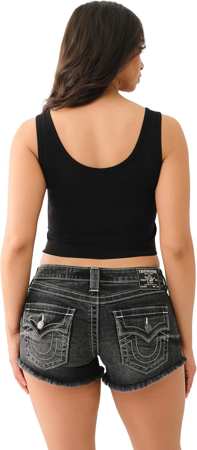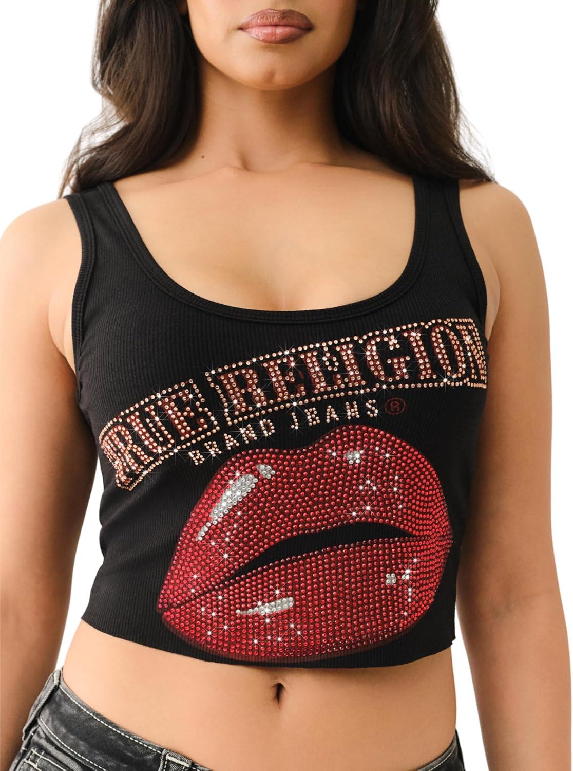 True Religion Womens Crystal Lips Raw Hem Tank(Jet Black)