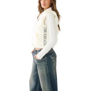 True Religion Shrunken Women’s Cropped Zip Up Hoodie – Big T Stitching & Iconic Horseshoe Logo(Jet Black)