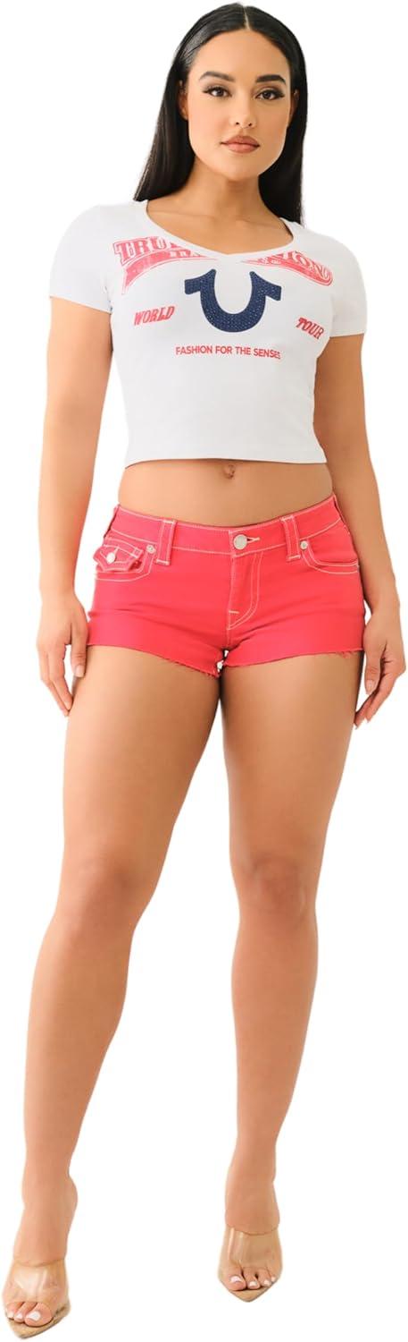 True Religion Women’s Joey Low-Rise Short Flap Shorts – Scarlet Sage | Denim Shorts with Flap Pockets(Scarlet Sage)