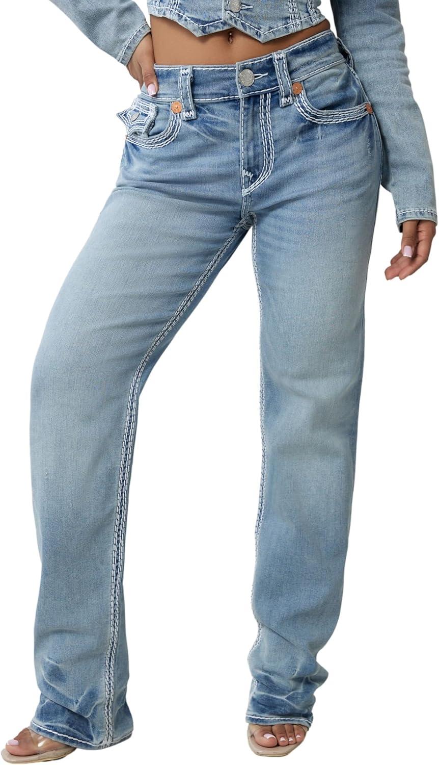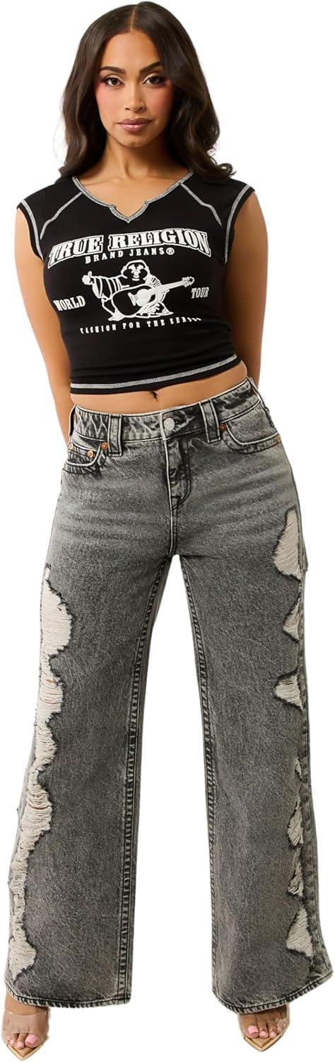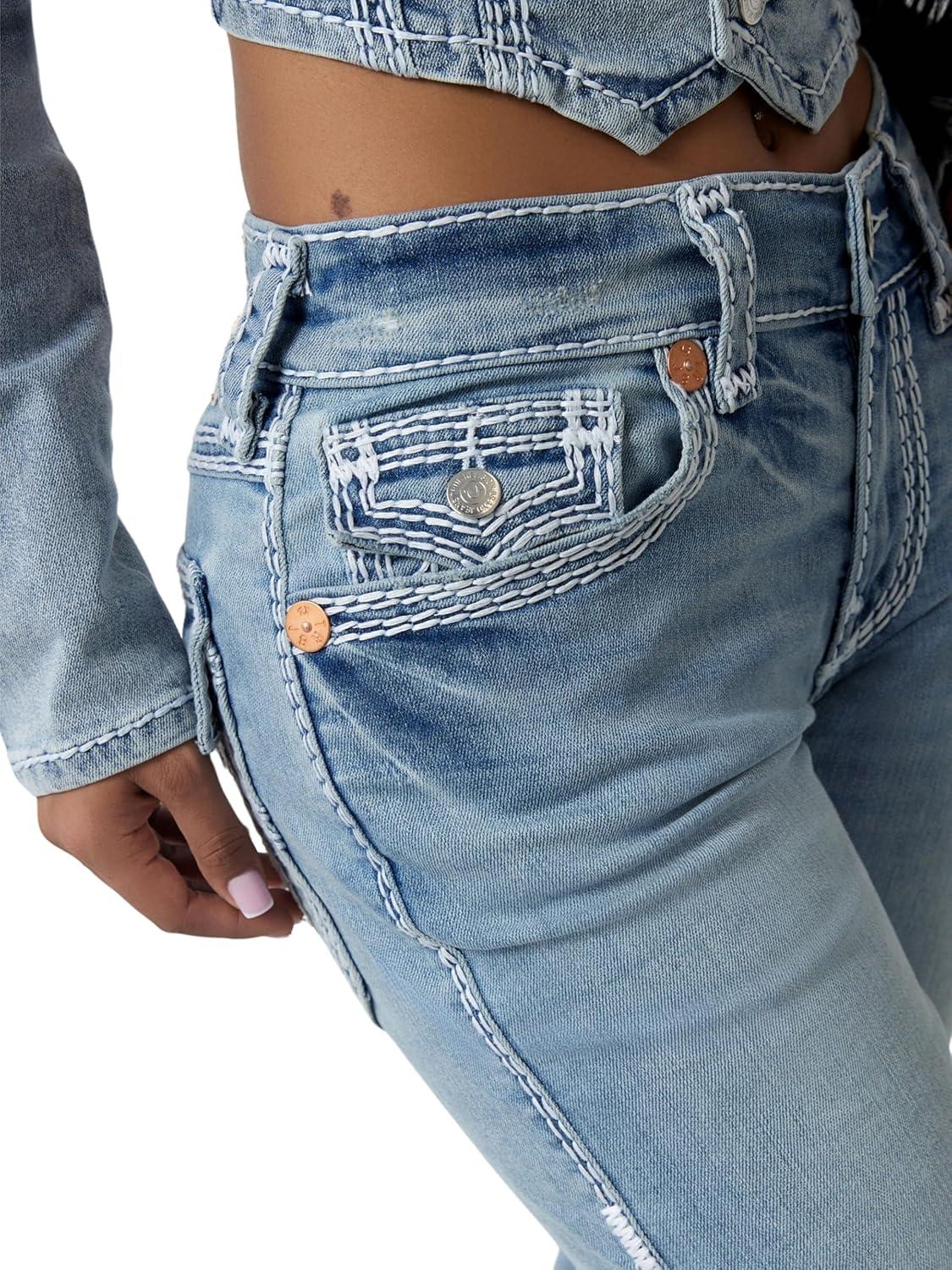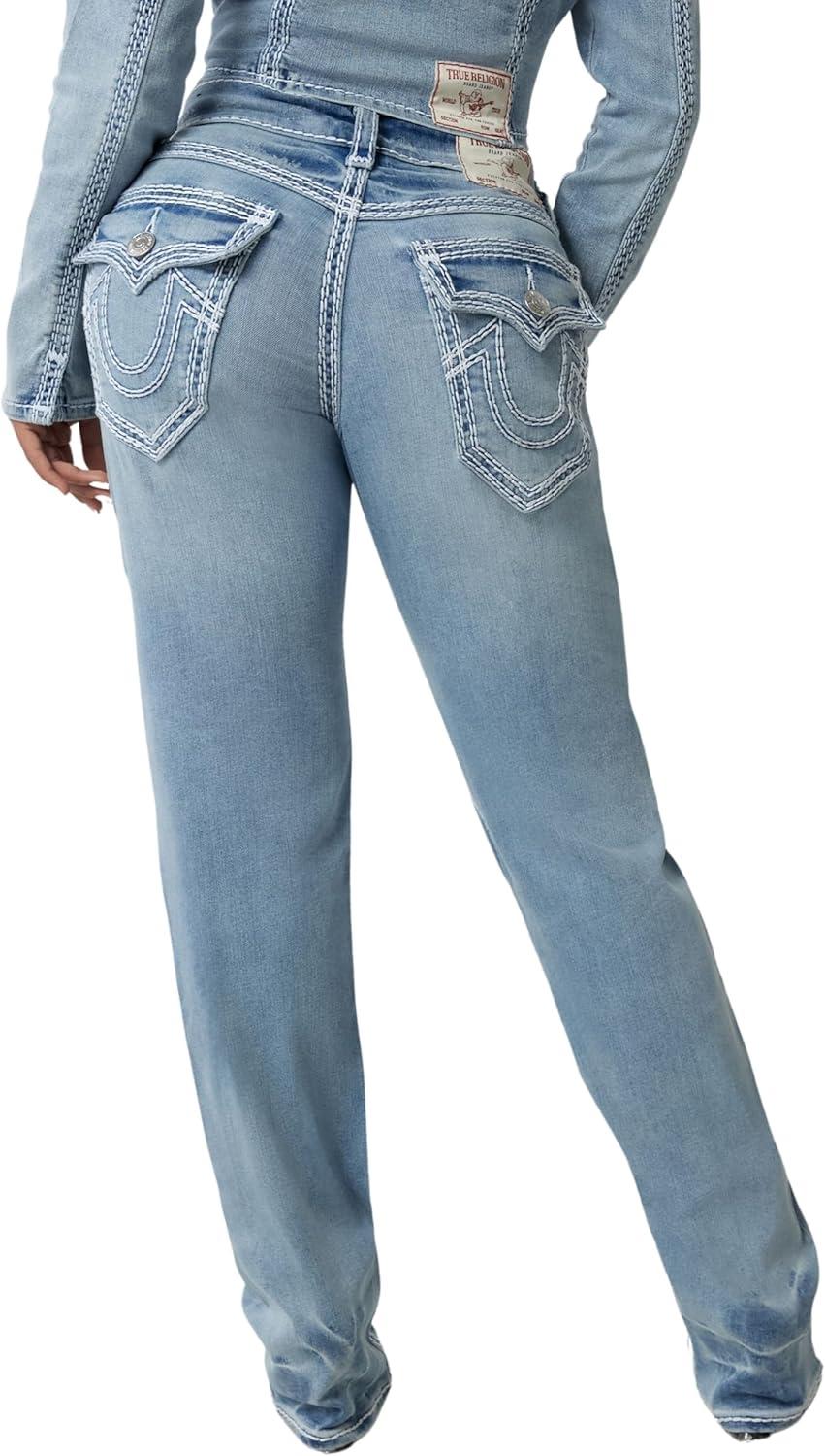 True Religion Women’s Ricki Relaxed Straight Super QT Stitch Jeans with Flap Pockets(Horizon Henge)