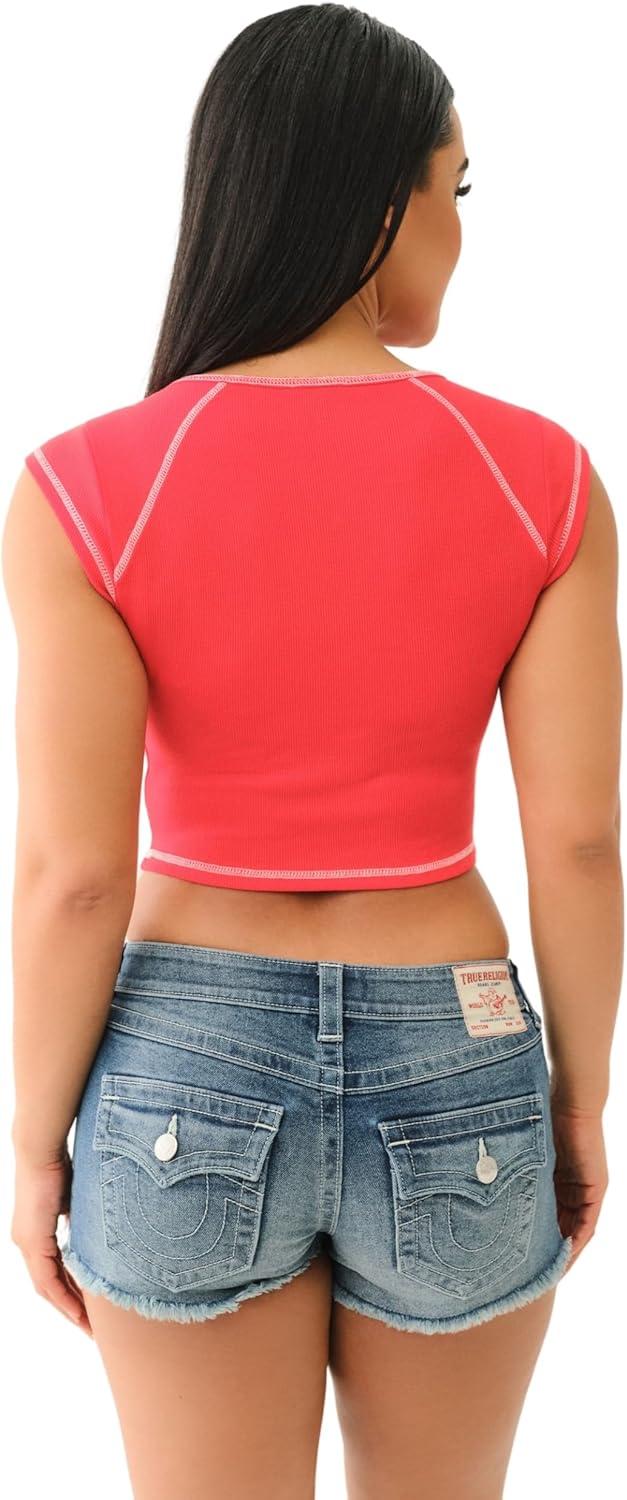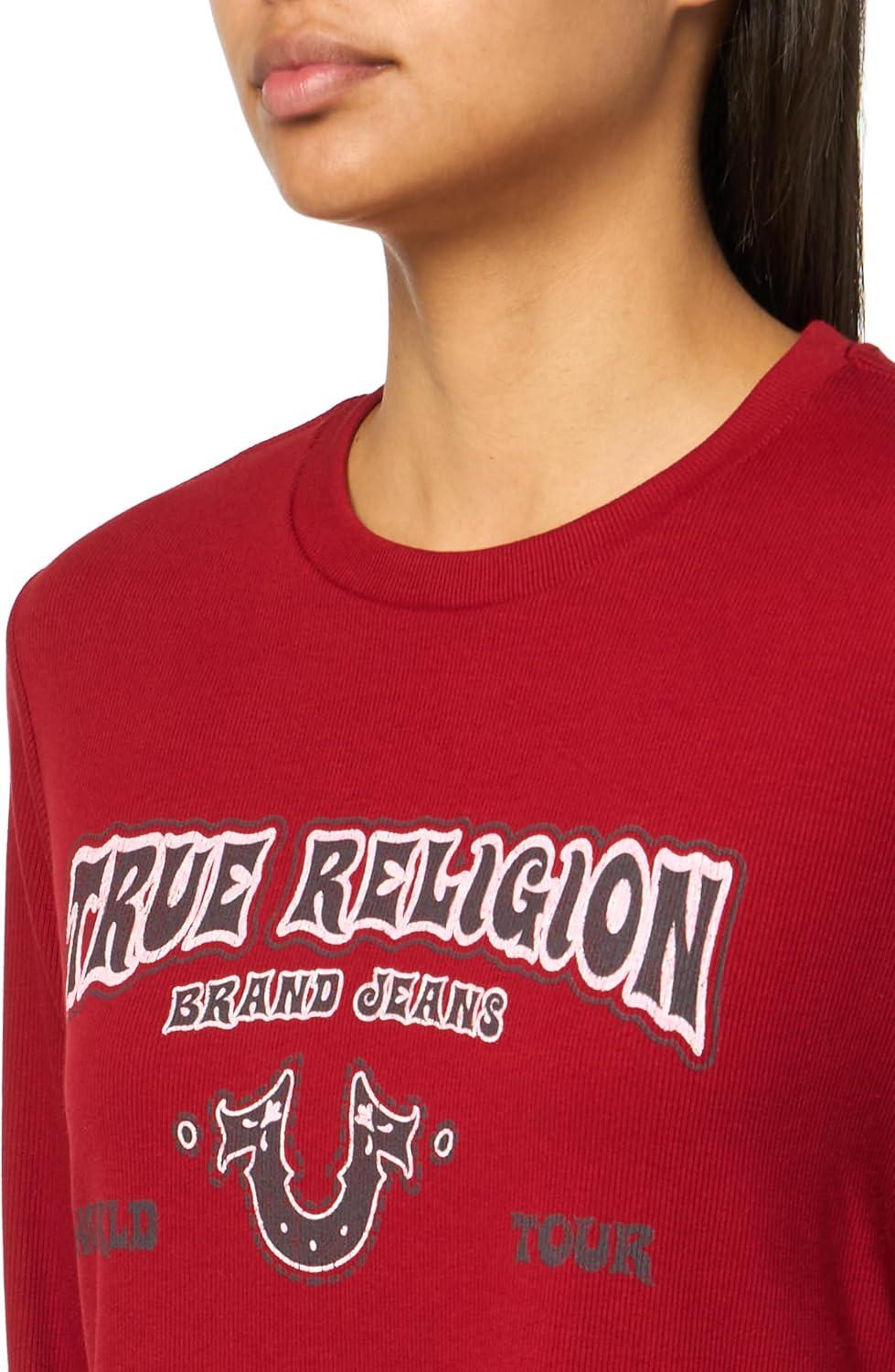 True Religion Women’s Western Logo Rib Baby Tee(Red Dahlia)