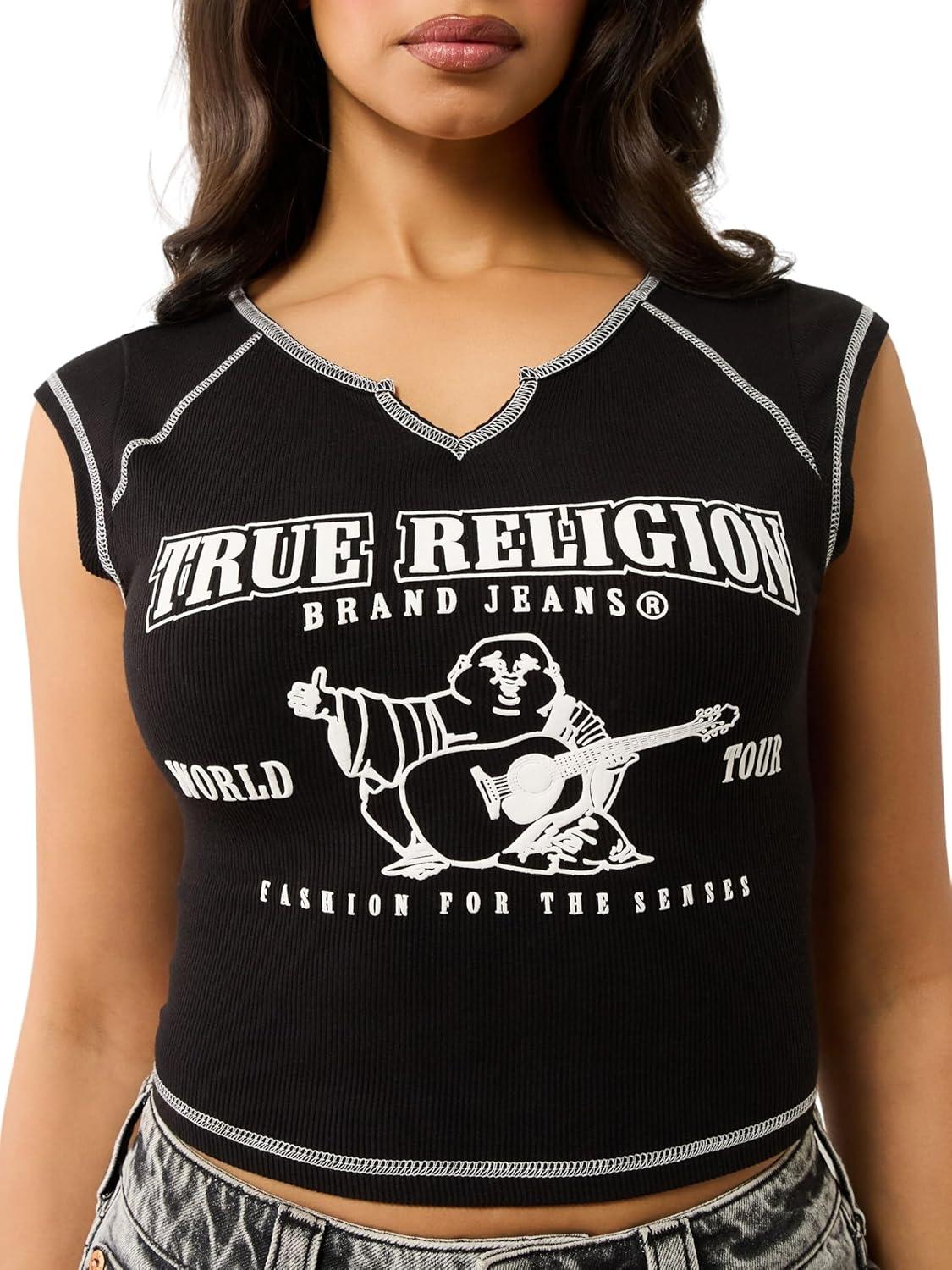True Religion Women’s Western Logo Rib Baby Tee(Jet Black)