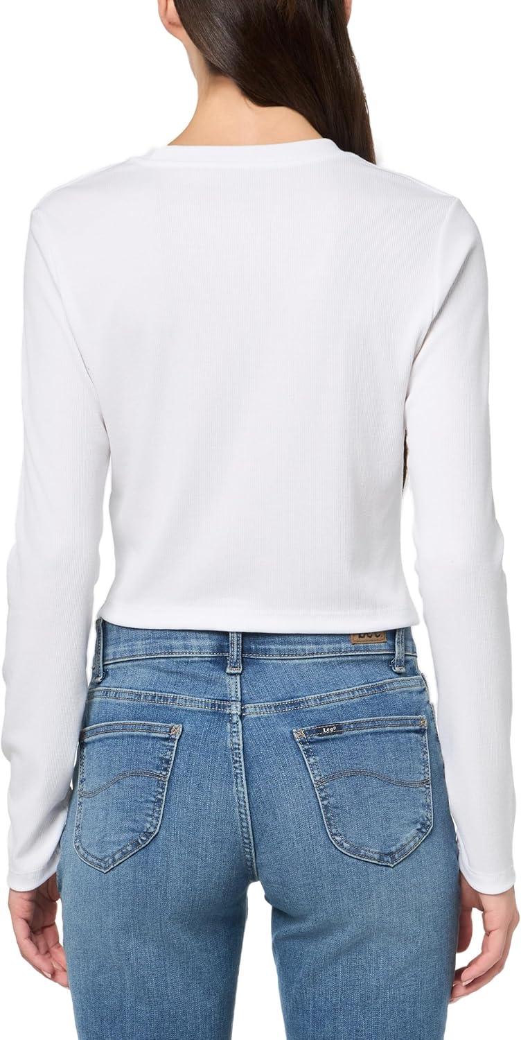 True Religion Women’s Western Logo Rib Baby Tee(Optic White)