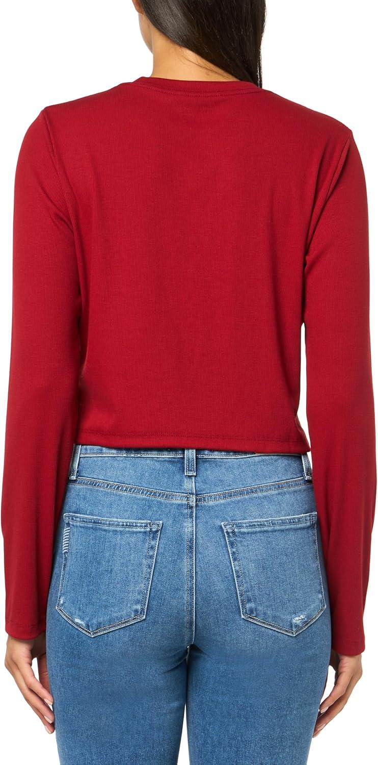 True Religion Women’s SRS Contrast Stitch Rib Notched Tee – Casual Crew Neck T-Shirt(Flame Scarlet)